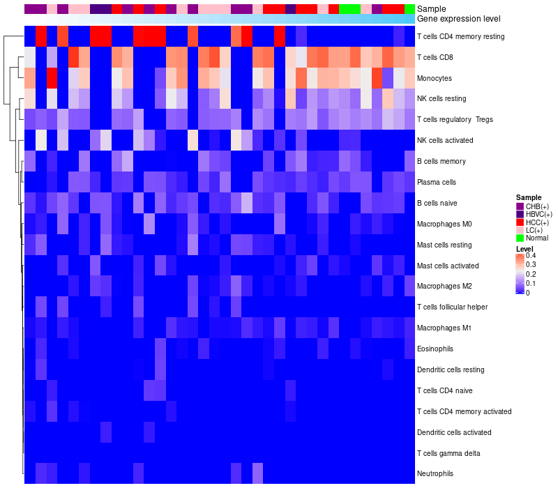 Relationship between gene expression and immune infiltrating cell level