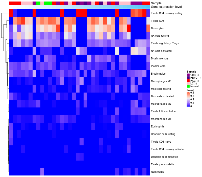 Liver hepatocellular carcinoma HCV (HBV+)(86), Liver hepatocellular carcinoma HCV (HBV-)(19), Liver hepatocellular carcinoma (HBV+)(209), Liver hepatocellular carcinoma (HBV+)(60), Paracancerous HCV (HBV+)(4), Paracancerous (HBV-)(28), Paracancerous (HBV+)(18) |