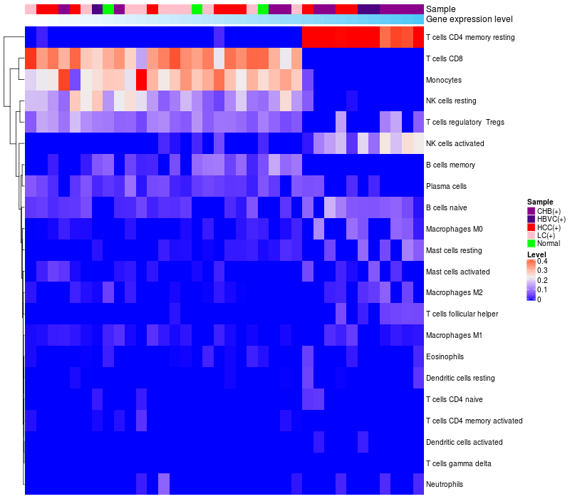 Relationship between gene expression and immune infiltrating cell level