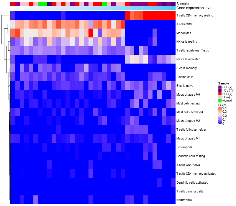 Liver hepatocellular carcinoma HCV (HBV+)(86), Liver hepatocellular carcinoma HCV (HBV-)(19), Liver hepatocellular carcinoma (HBV+)(209), Liver hepatocellular carcinoma (HBV+)(60), Paracancerous HCV (HBV+)(4), Paracancerous (HBV-)(28), Paracancerous (HBV+)(18) |