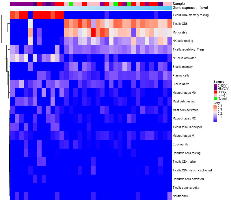 Relationship between gene expression and immune infiltrating cell level