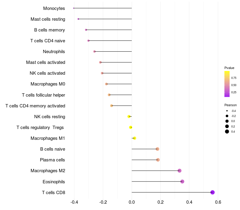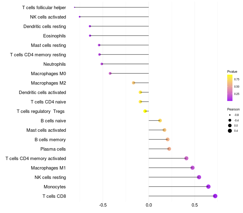 Lollipop of LOXHD1 expression and immune infiltrating cell level correlation result in HBV+ samples