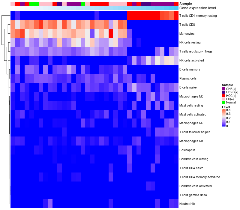 Liver hepatocellular carcinoma HCV (HBV+)(86), Liver hepatocellular carcinoma HCV (HBV-)(19), Liver hepatocellular carcinoma (HBV+)(209), Liver hepatocellular carcinoma (HBV+)(60), Paracancerous HCV (HBV+)(4), Paracancerous (HBV-)(28), Paracancerous (HBV+)(18) |