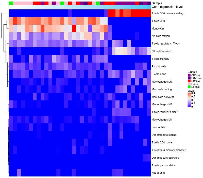 Liver hepatocellular carcinoma HCV (HBV+)(86), Liver hepatocellular carcinoma HCV (HBV-)(19), Liver hepatocellular carcinoma (HBV+)(209), Liver hepatocellular carcinoma (HBV+)(60), Paracancerous HCV (HBV+)(4), Paracancerous (HBV-)(28), Paracancerous (HBV+)(18) |