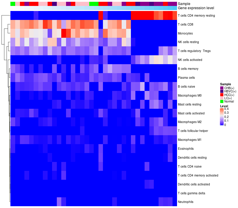 Liver hepatocellular carcinoma HCV (HBV+)(86), Liver hepatocellular carcinoma HCV (HBV-)(19), Liver hepatocellular carcinoma (HBV+)(209), Liver hepatocellular carcinoma (HBV+)(60), Paracancerous HCV (HBV+)(4), Paracancerous (HBV-)(28), Paracancerous (HBV+)(18) |