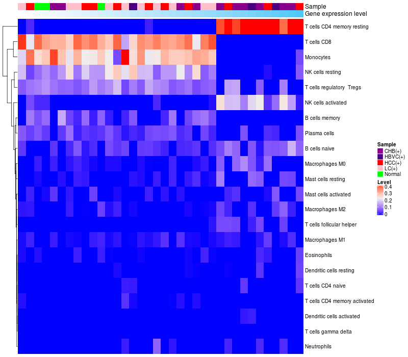 Relationship between gene expression and immune infiltrating cell level