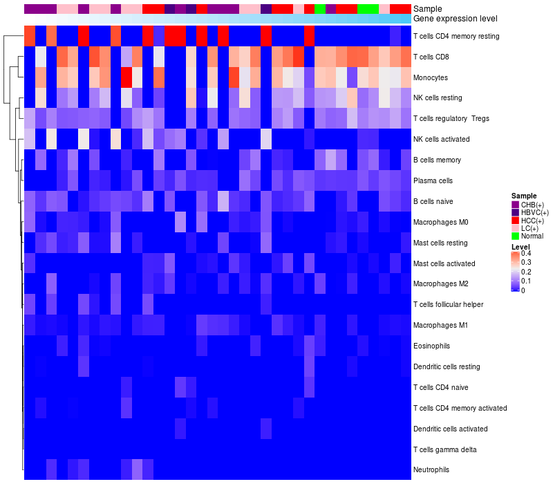 Lollipop of LRRC7 expression and immune infiltrating cell level correlation result in HBV+ Hepatocellular carcinoma samples