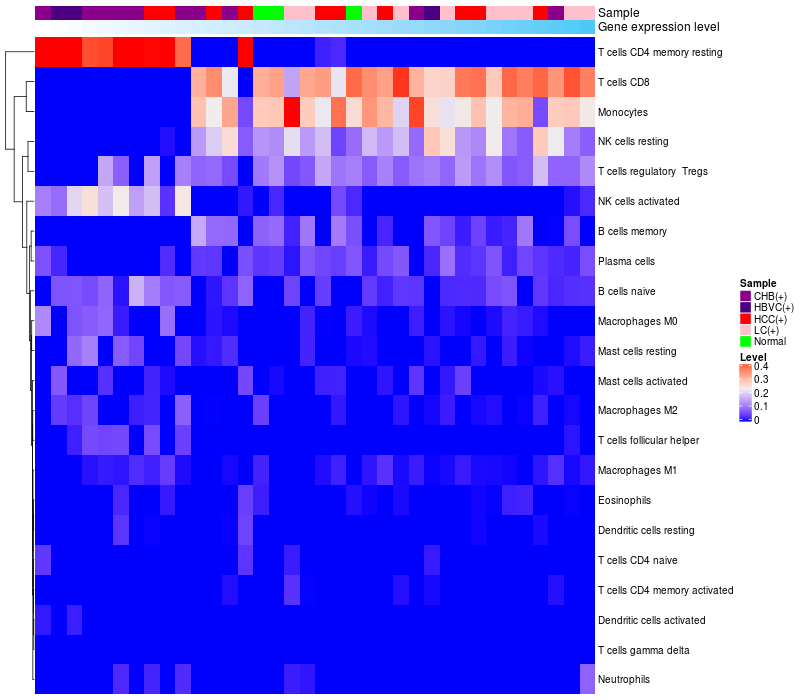 Relationship between gene expression and immune infiltrating cell level