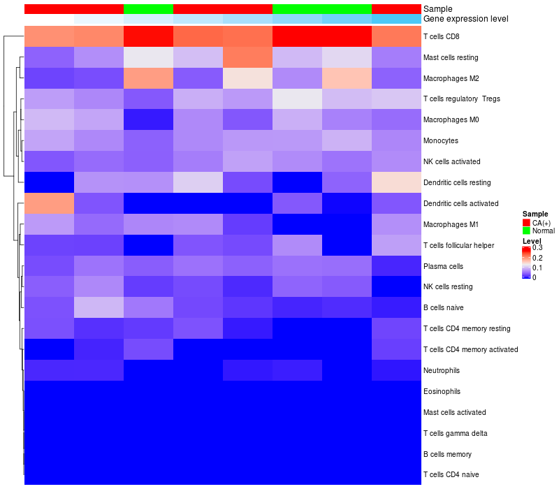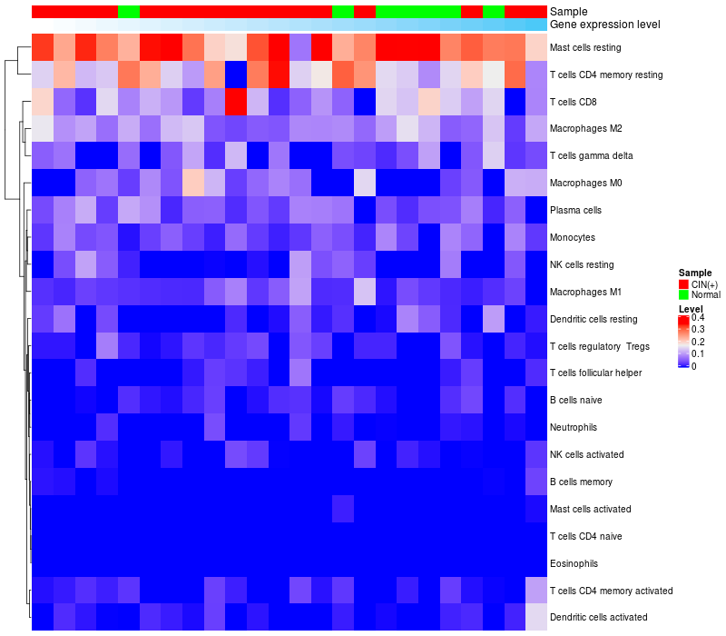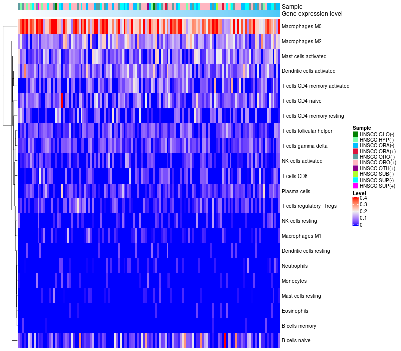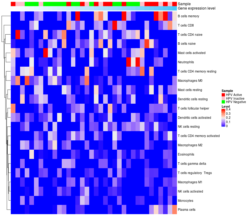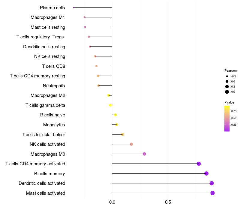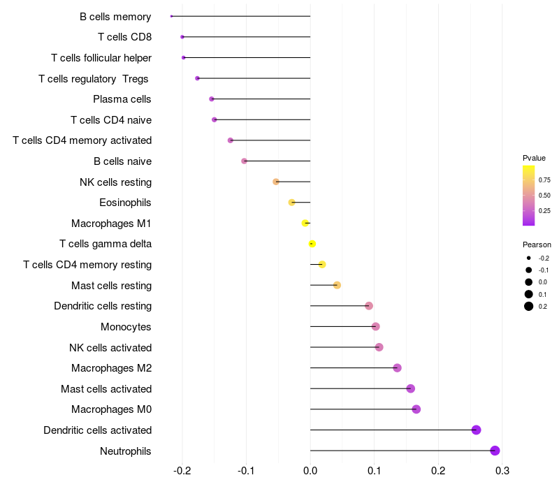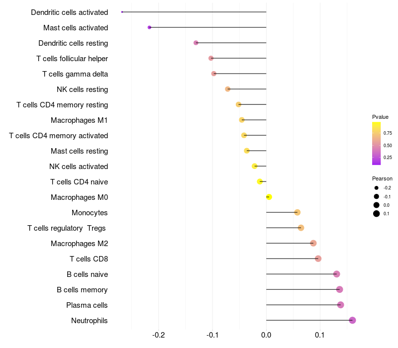 Lollipop of MAG expression and immune infiltrating cell level correlation result in HPV+ samples