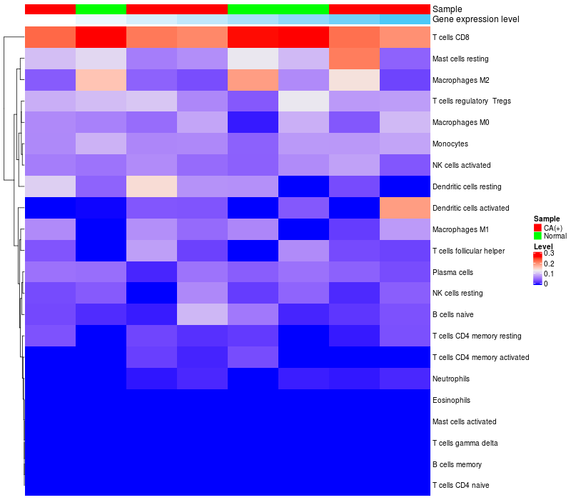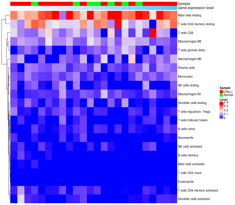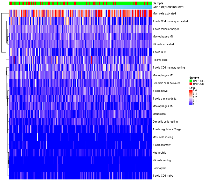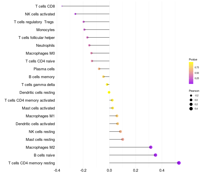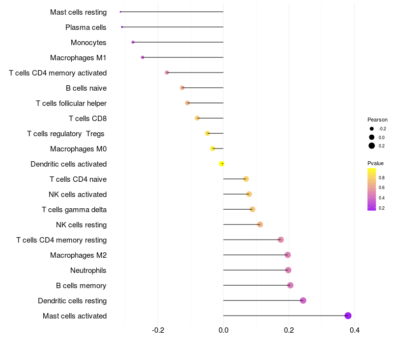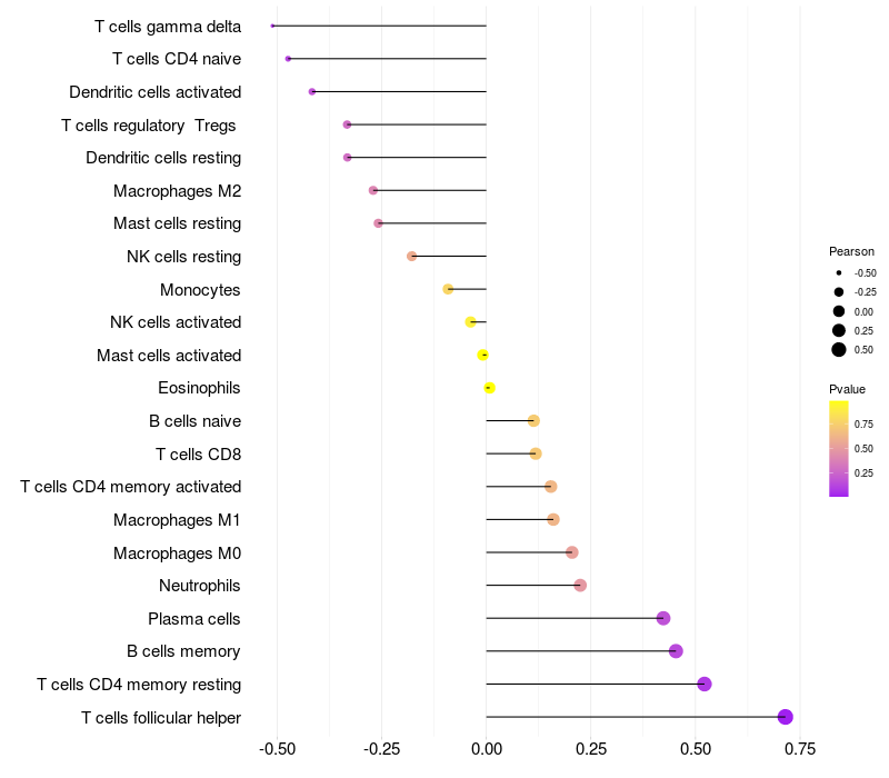 Lollipop of MDN1 expression and immune infiltrating cell level correlation result in HPV+ samples
