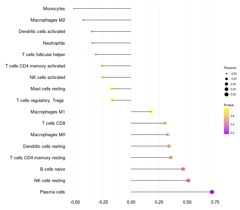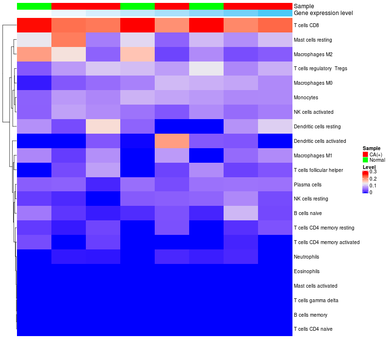 Relationship between gene expression and immune infiltrating cell level