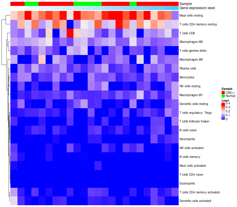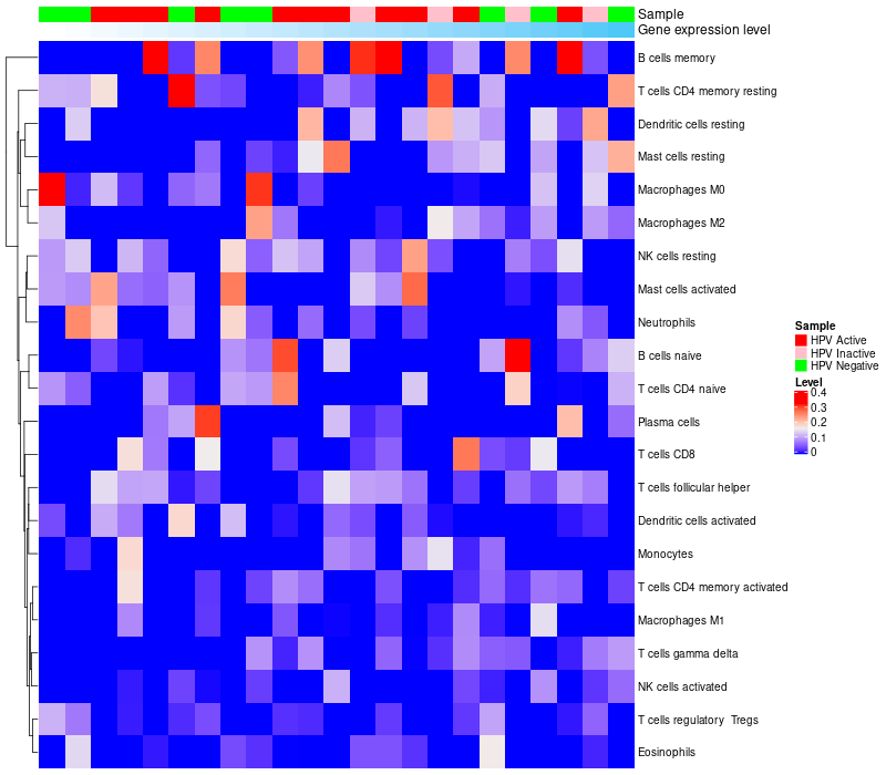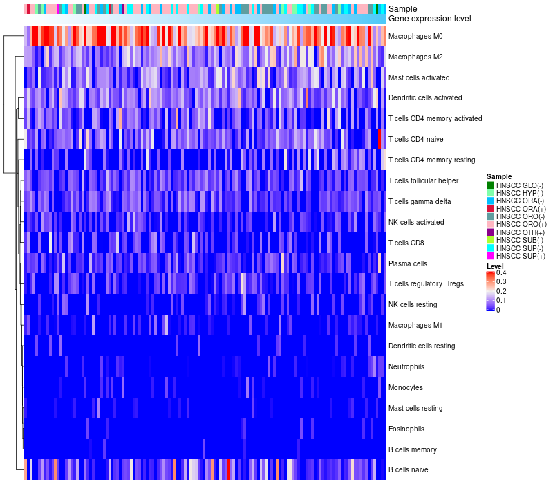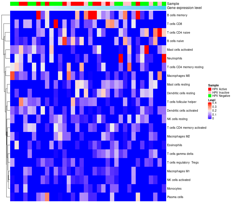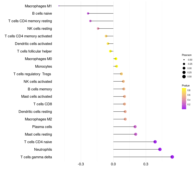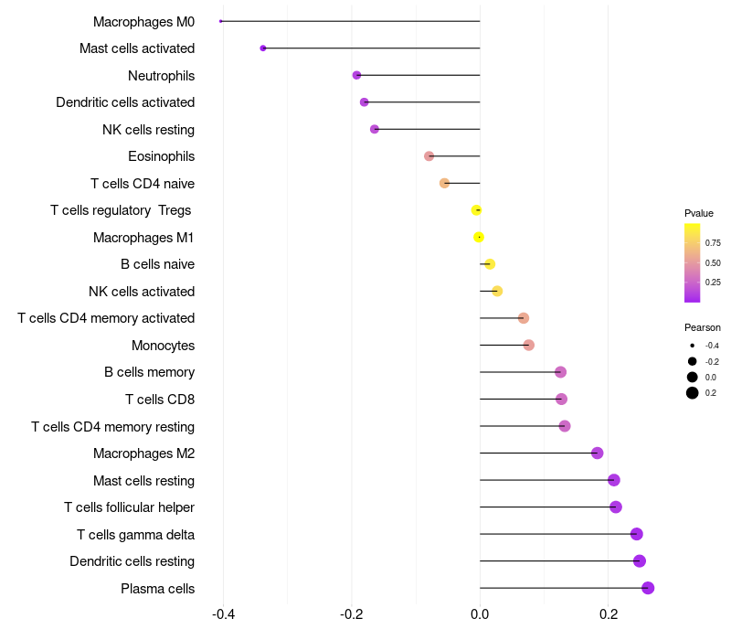 Lollipop of MRPS33 expression and immune infiltrating cell level correlation result in HPV+ samples