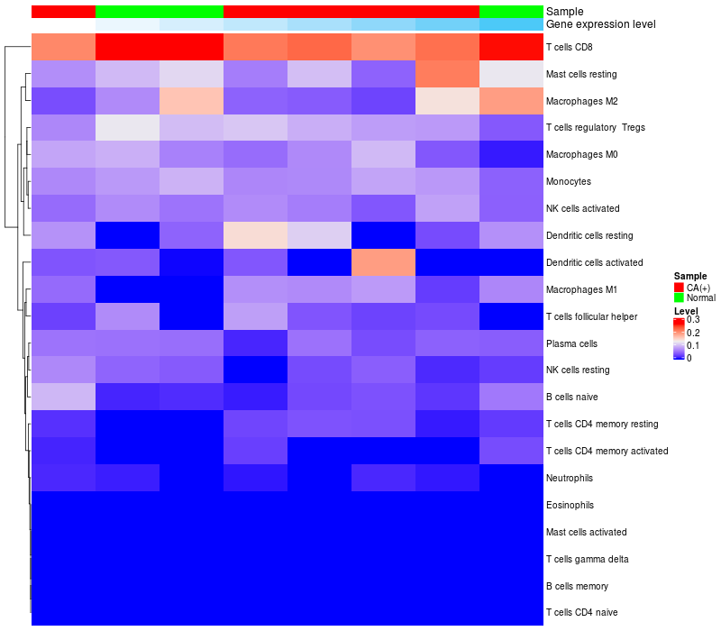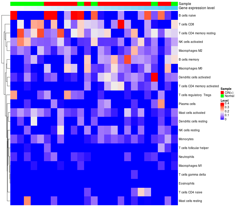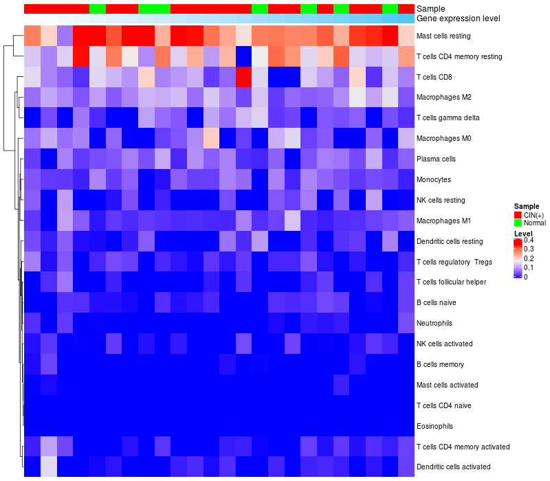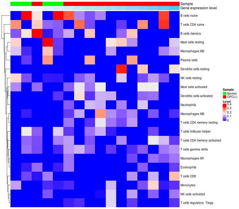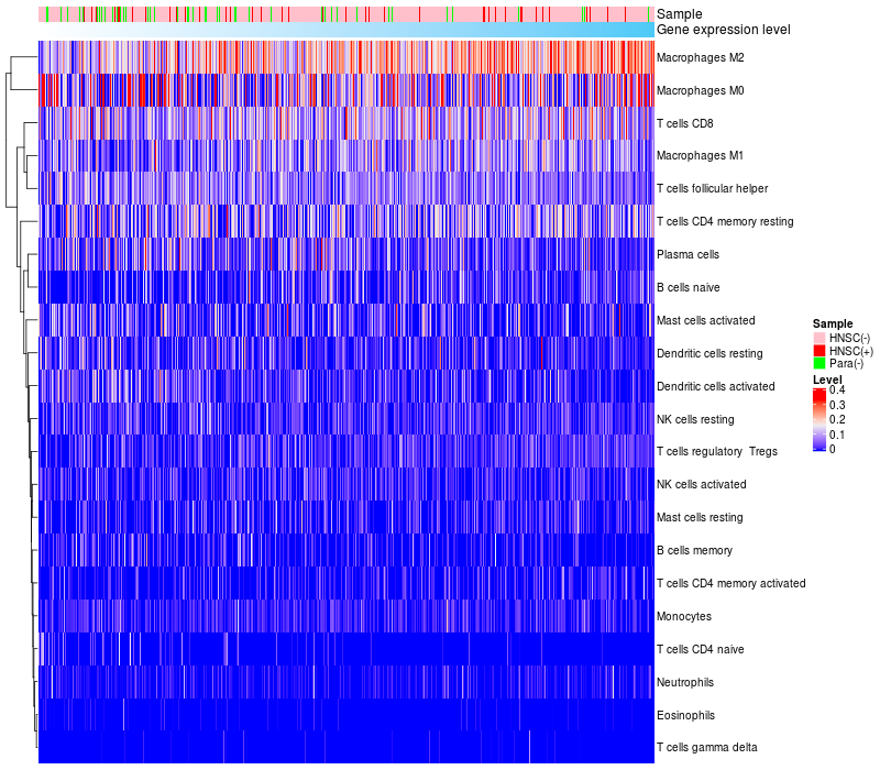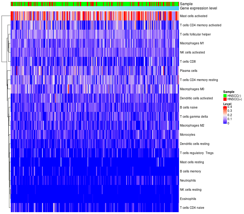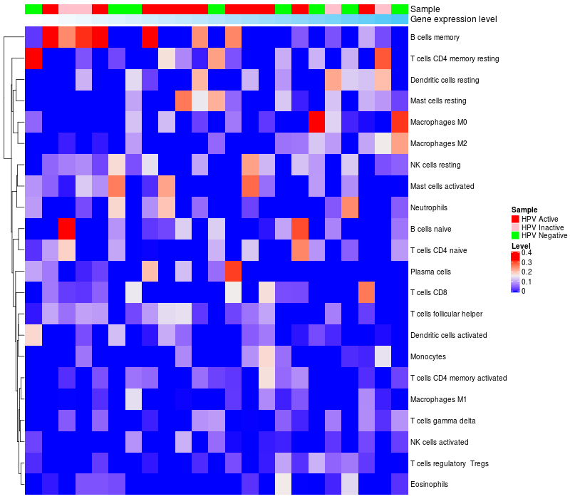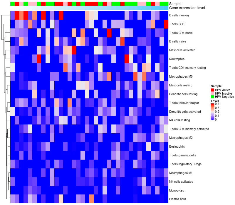 Lollipop of MSR1 expression and immune infiltrating cell level correlation result in HPV+ samples