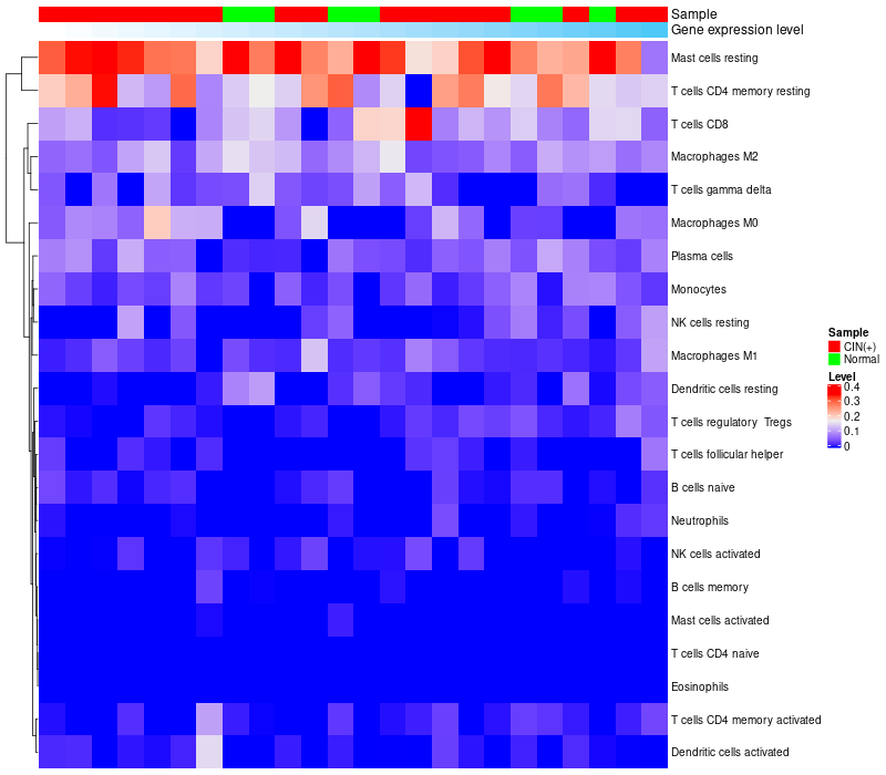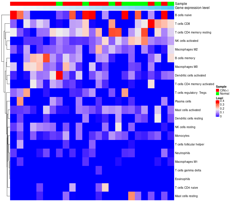 Normal (10), Cervical intraepithelial neoplasia (HPV+)(15) |