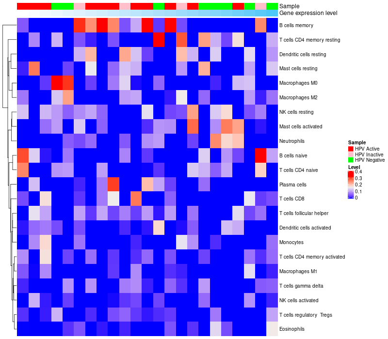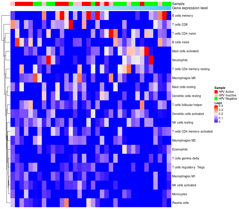 Oropharyngeal cancers HPV Active (12), Oropharyngeal cancers HPV Inactive (8), Oropharyngeal cancers HPV Negative (16) |