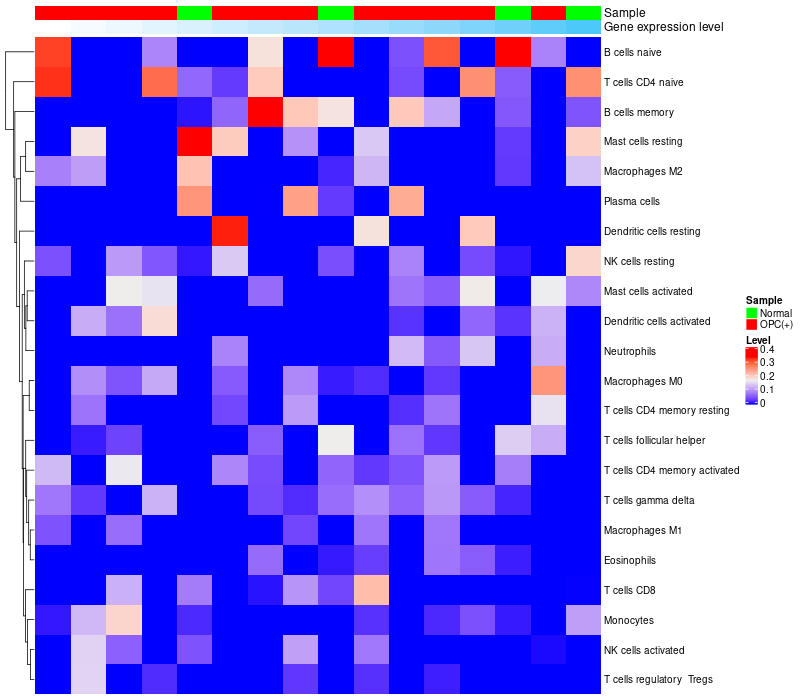 Oropharyngeal cancers (HPV+)(12), Normal (4) |