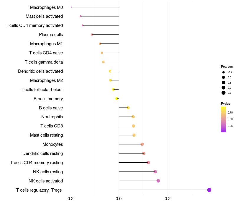 Relationship between gene expression and immune infiltrating cell level