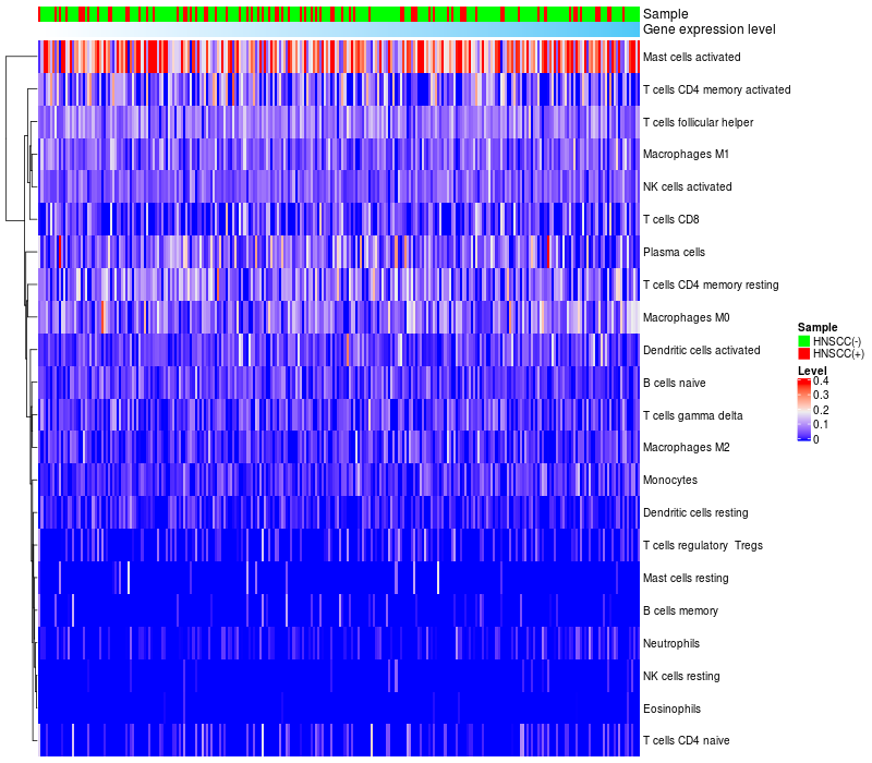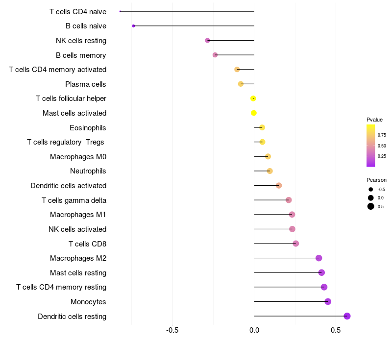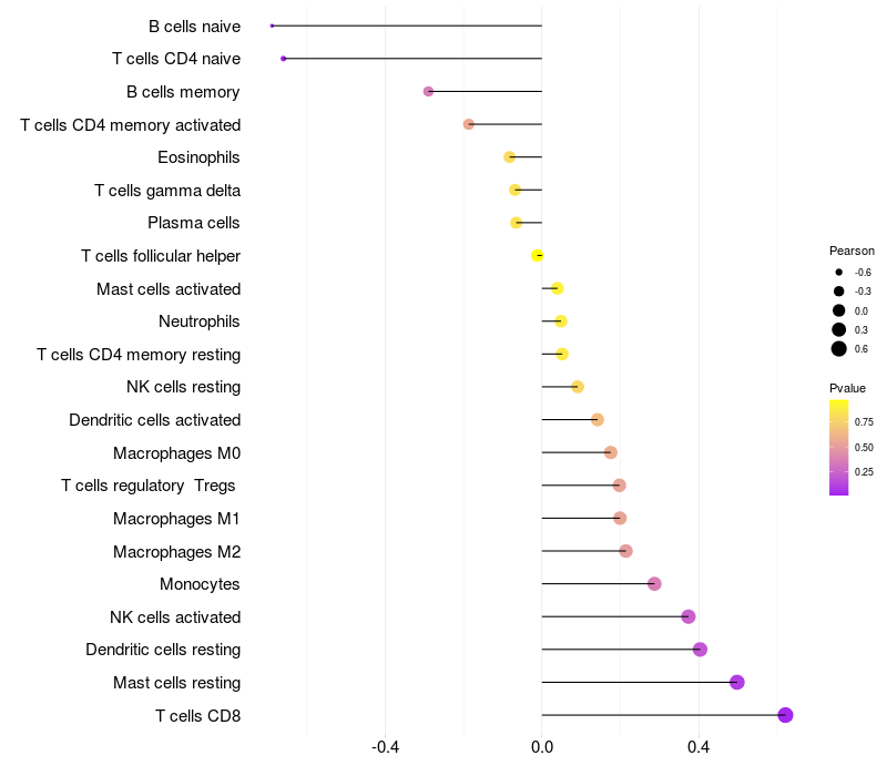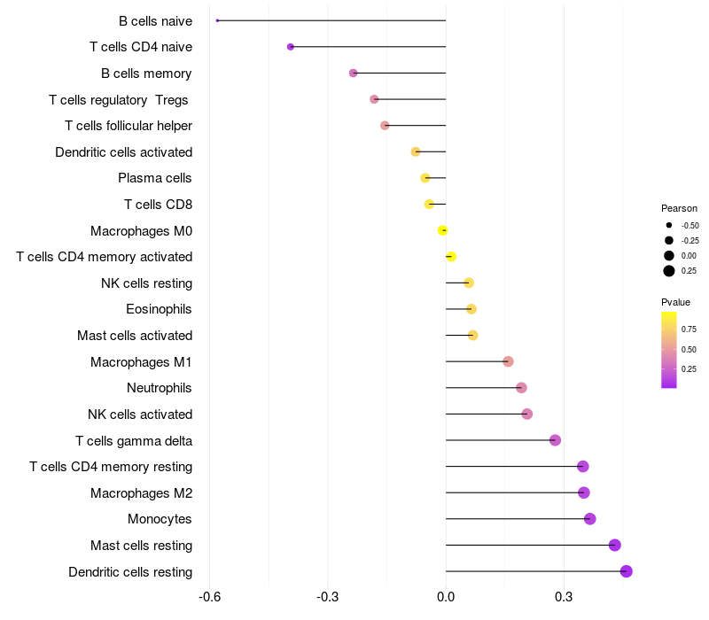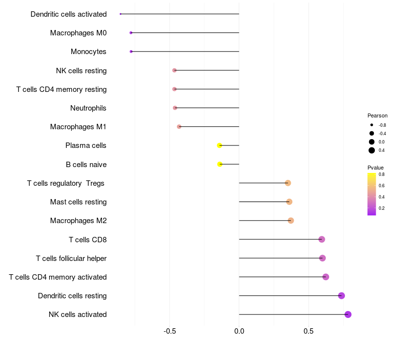 Lollipop of MYL4 expression and immune infiltrating cell level correlation result in HPV+ samples