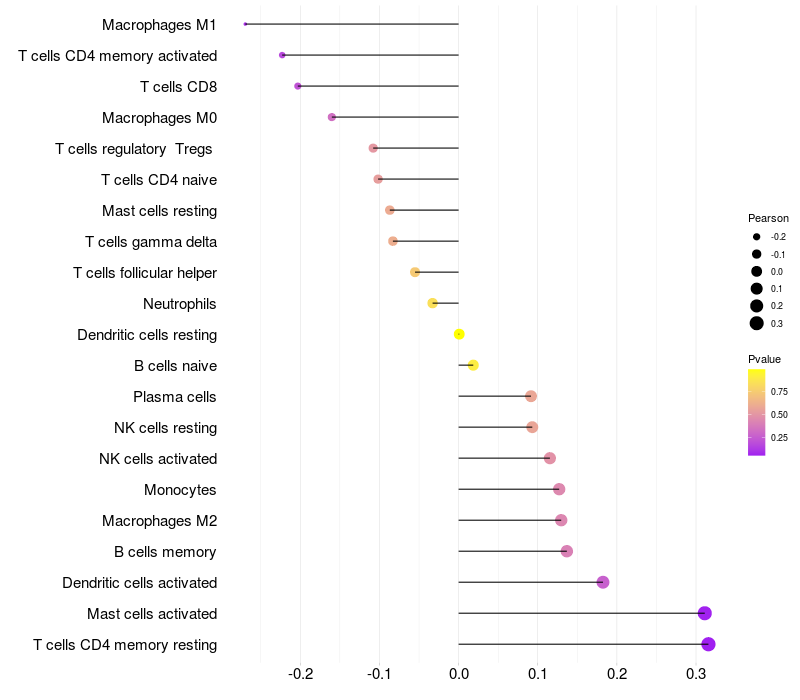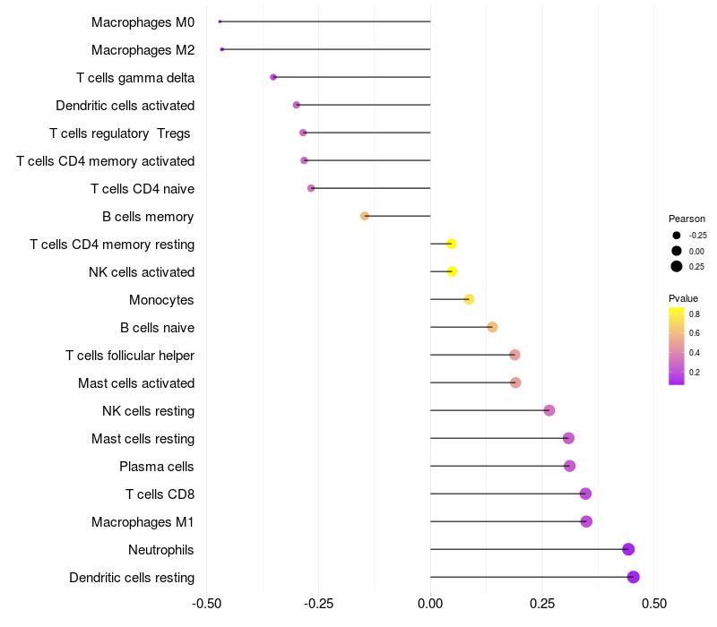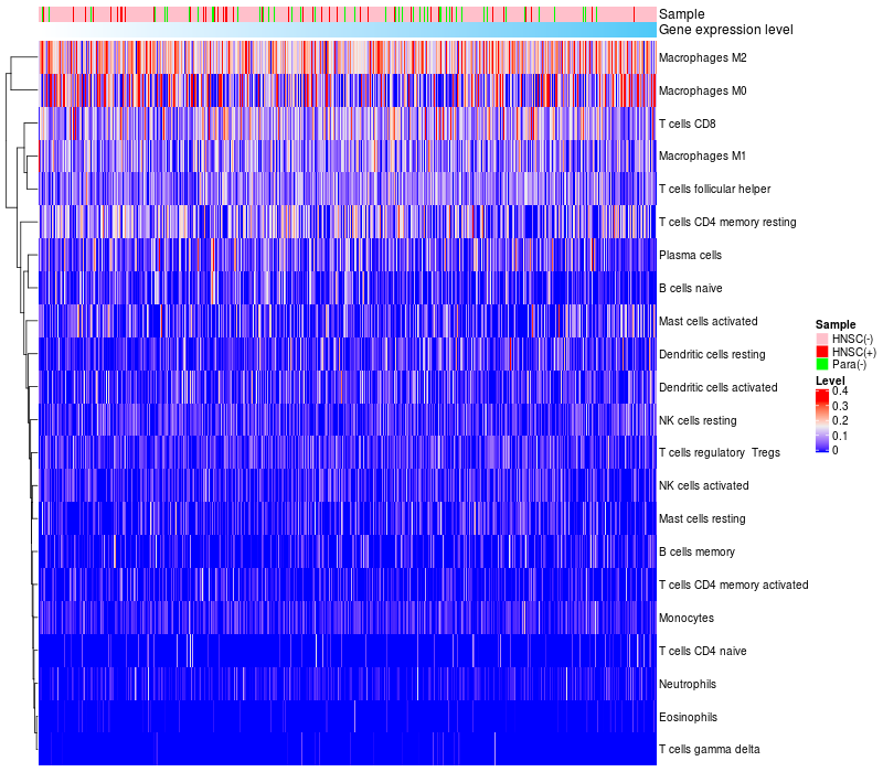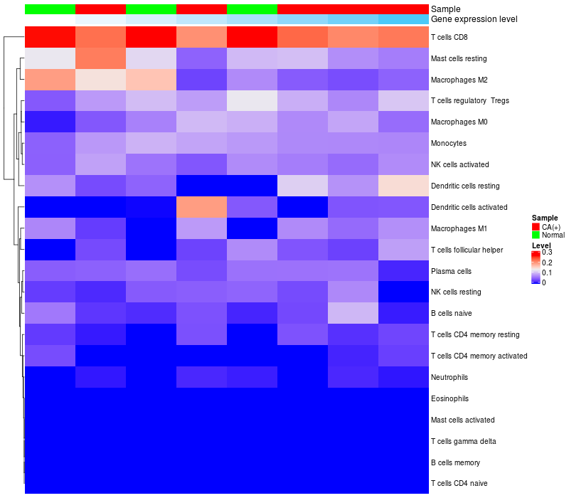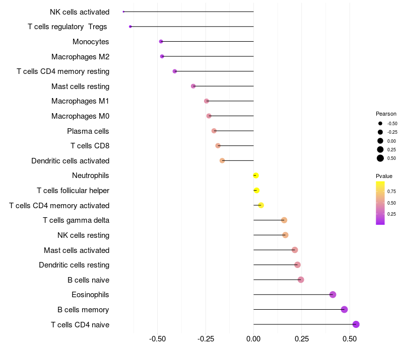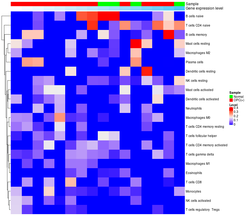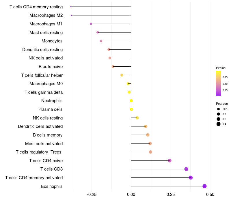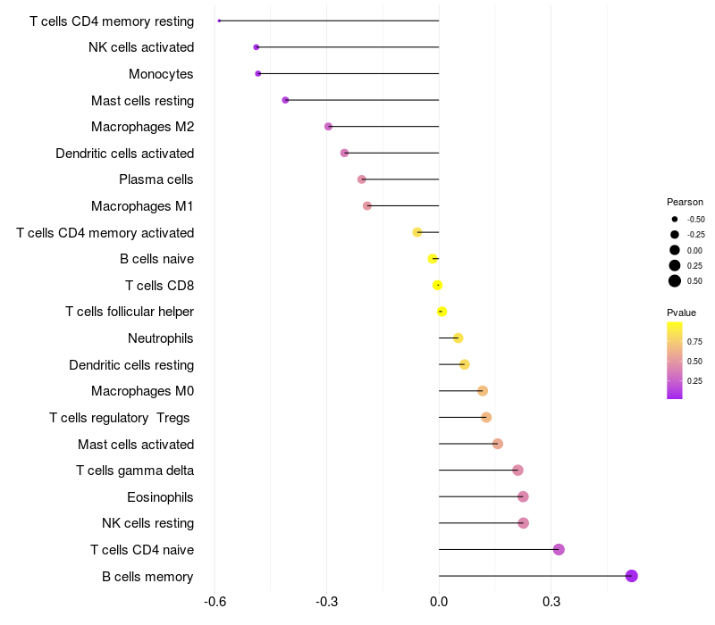 Relationship between gene expression and immune infiltrating cell level