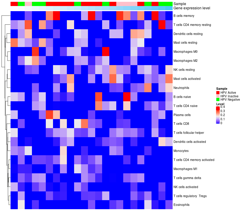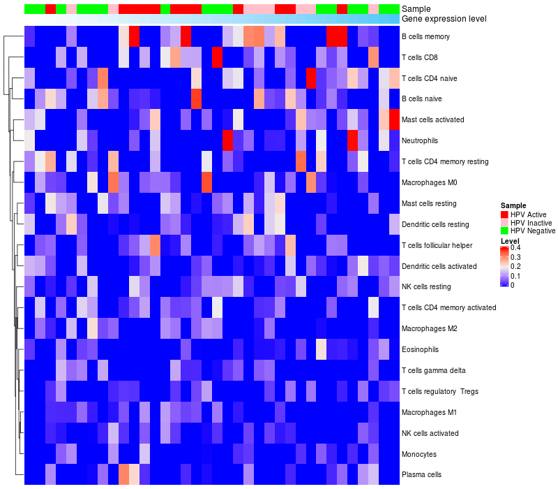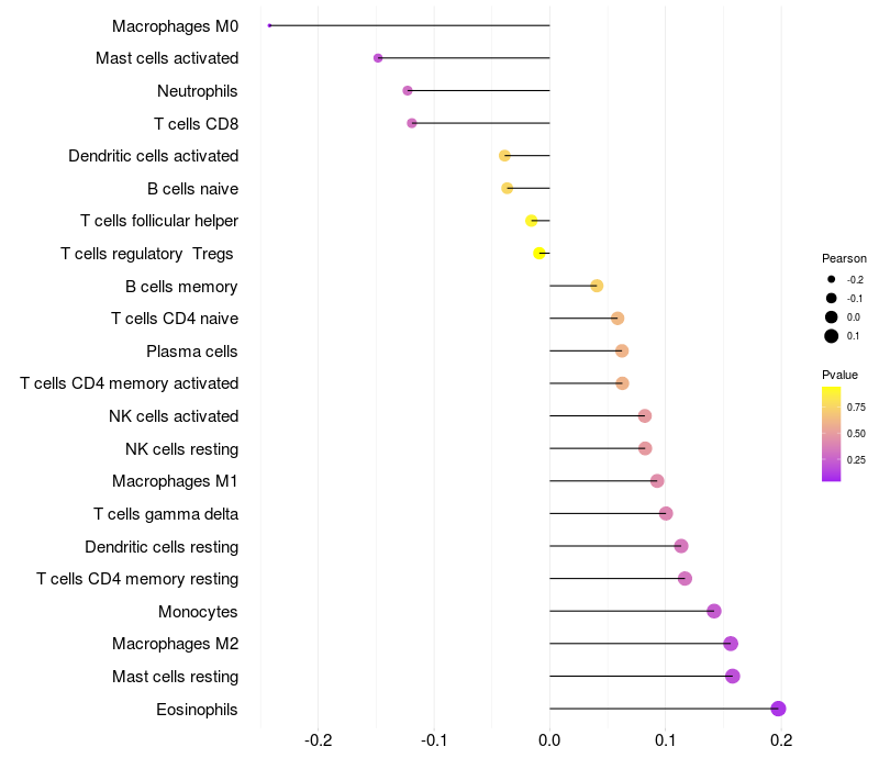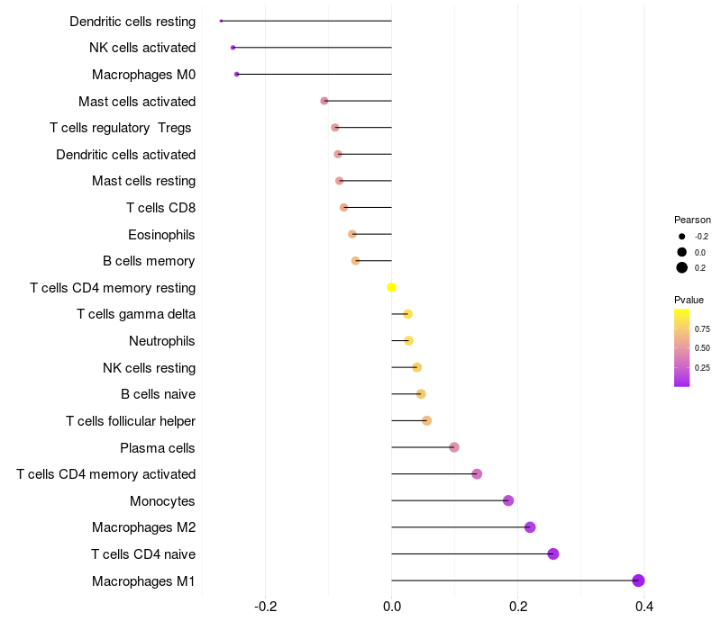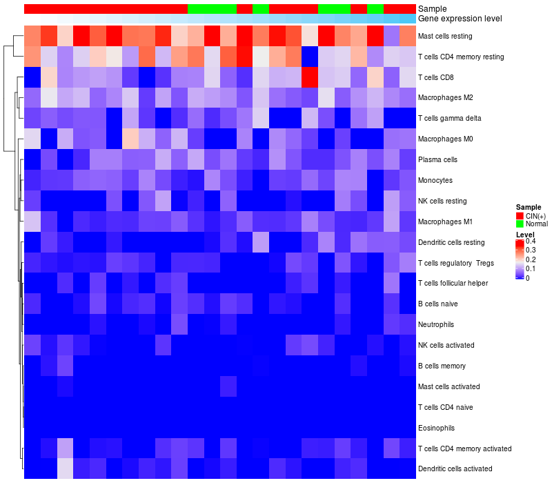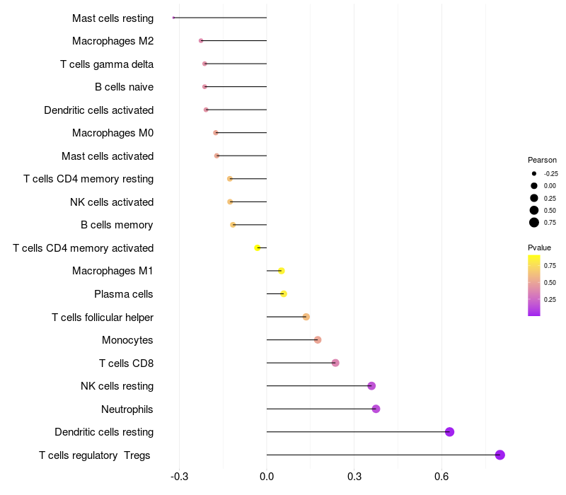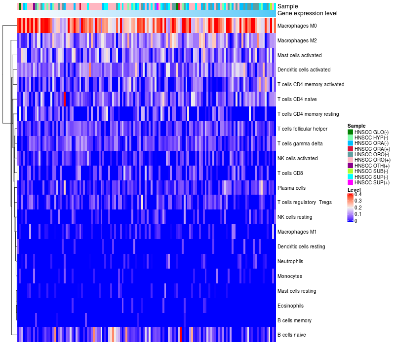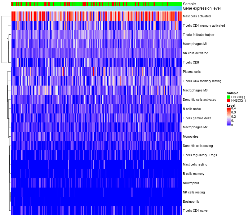 Relationship between gene expression and immune infiltrating cell level