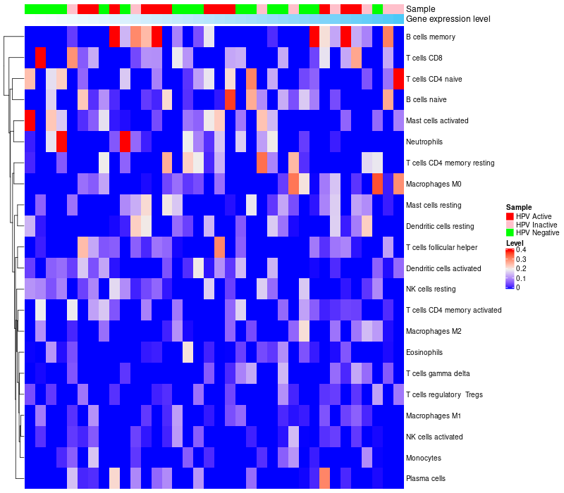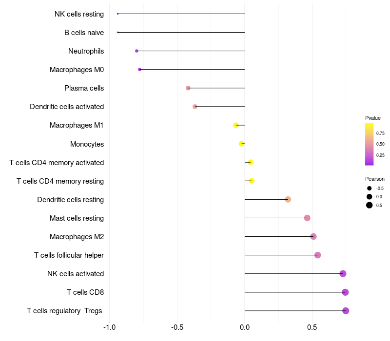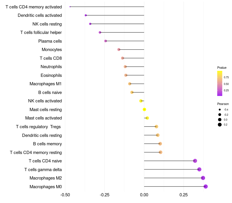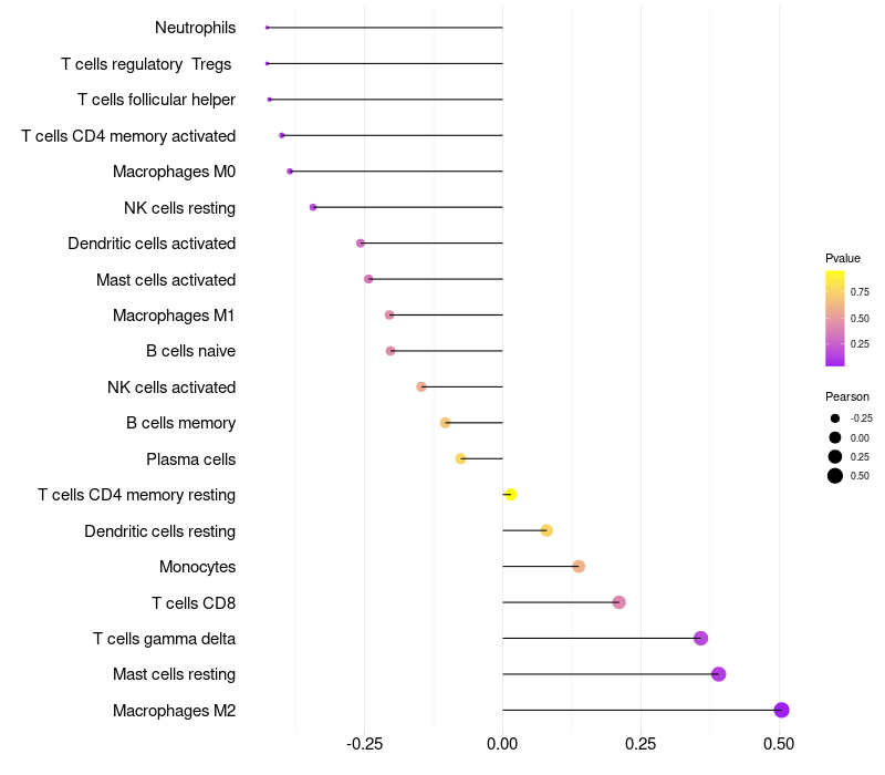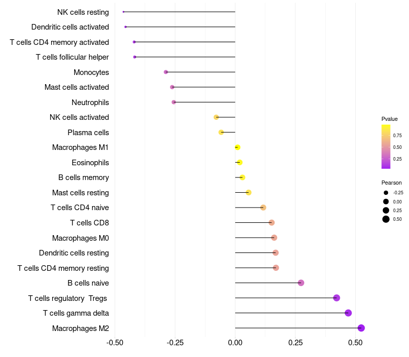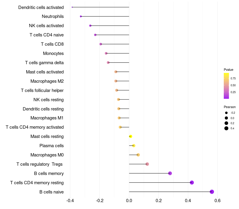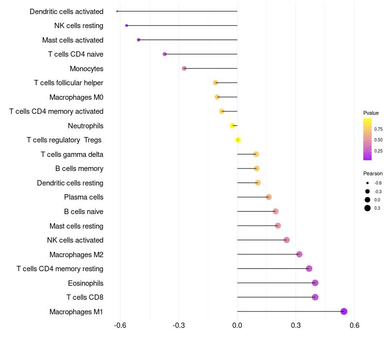 Lollipop of NAP1L3 expression and immune infiltrating cell level correlation result in HPV+ samples