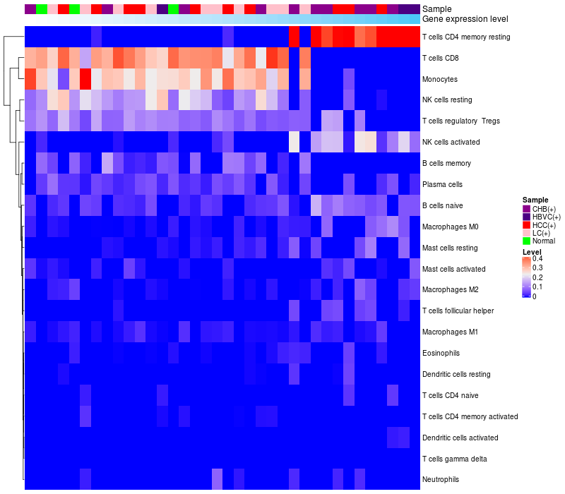 Relationship between gene expression and immune infiltrating cell level