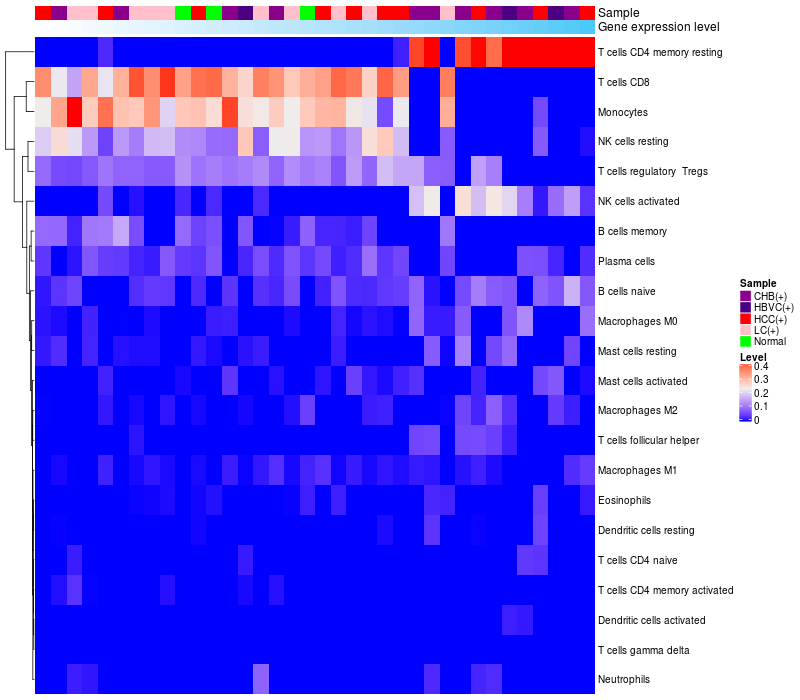 Liver hepatocellular carcinoma HCV (HBV+)(86), Liver hepatocellular carcinoma HCV (HBV-)(19), Liver hepatocellular carcinoma (HBV+)(209), Liver hepatocellular carcinoma (HBV+)(60), Paracancerous HCV (HBV+)(4), Paracancerous (HBV-)(28), Paracancerous (HBV+)(18) |