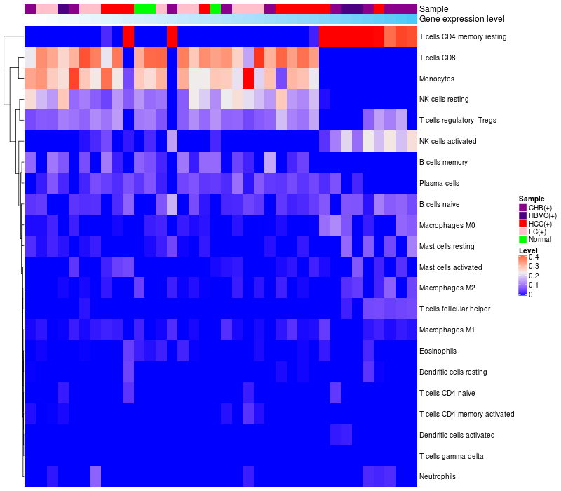 Relationship between gene expression and immune infiltrating cell level