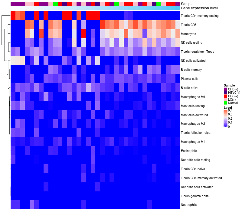Liver hepatocellular carcinoma HCV (HBV+)(86), Liver hepatocellular carcinoma HCV (HBV-)(19), Liver hepatocellular carcinoma (HBV+)(209), Liver hepatocellular carcinoma (HBV+)(60), Paracancerous HCV (HBV+)(4), Paracancerous (HBV-)(28), Paracancerous (HBV+)(18) |