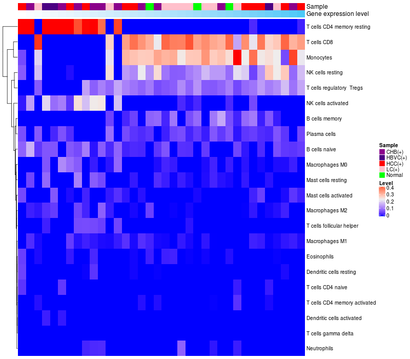 Liver hepatocellular carcinoma HCV (HBV+)(86), Liver hepatocellular carcinoma HCV (HBV-)(19), Liver hepatocellular carcinoma (HBV+)(209), Liver hepatocellular carcinoma (HBV+)(60), Paracancerous HCV (HBV+)(4), Paracancerous (HBV-)(28), Paracancerous (HBV+)(18) |