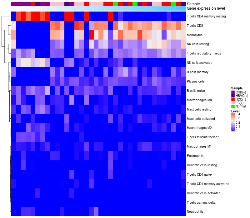 Liver hepatocellular carcinoma HCV (HBV+)(86), Liver hepatocellular carcinoma HCV (HBV-)(19), Liver hepatocellular carcinoma (HBV+)(209), Liver hepatocellular carcinoma (HBV+)(60), Paracancerous HCV (HBV+)(4), Paracancerous (HBV-)(28), Paracancerous (HBV+)(18) |