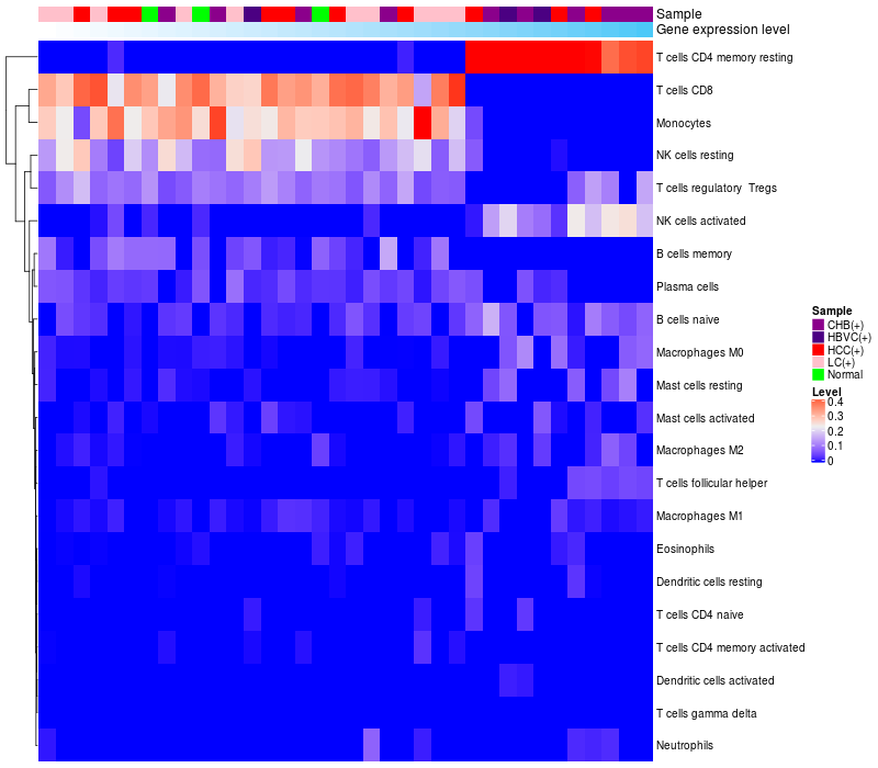 Relationship between gene expression and immune infiltrating cell level