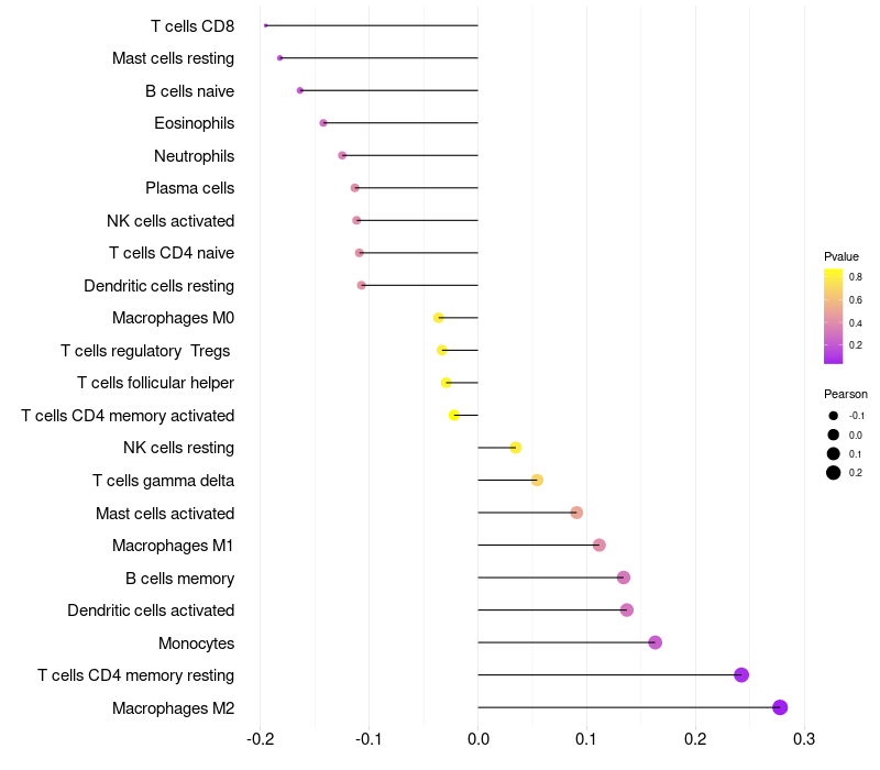 Relationship between gene expression and immune infiltrating cell level