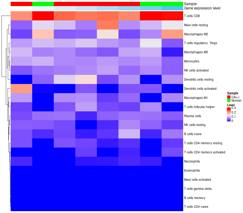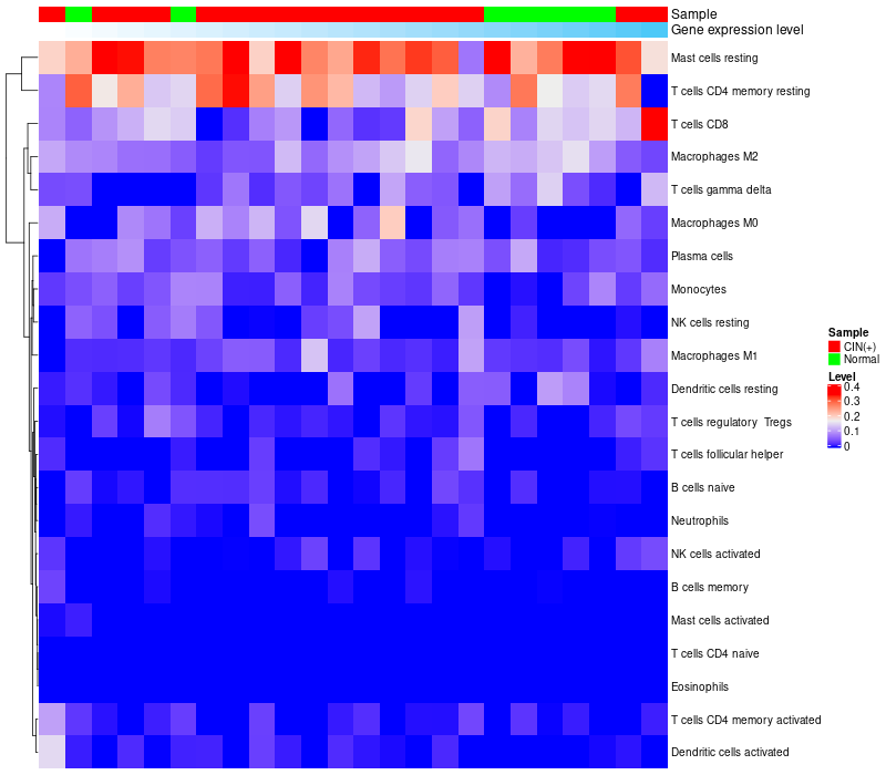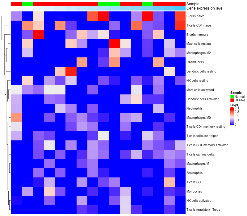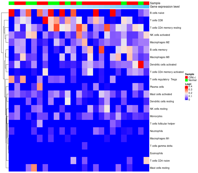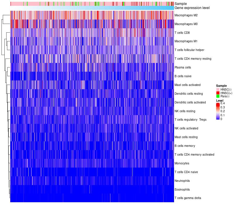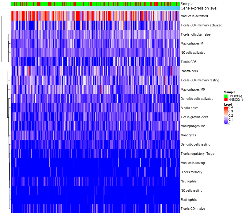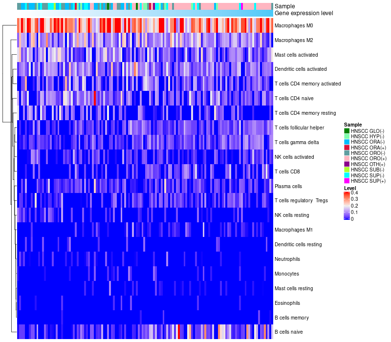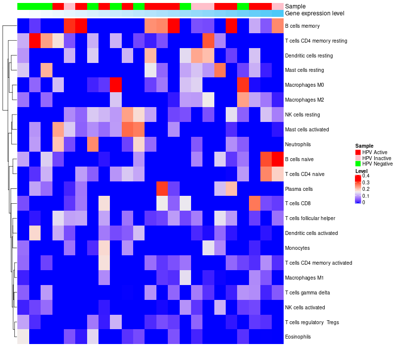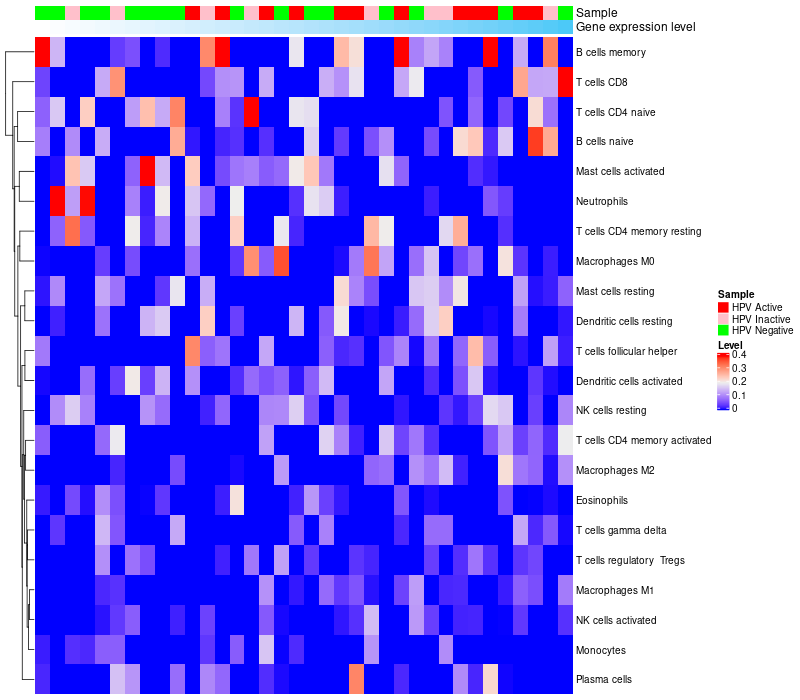 Lollipop of NHLRC3 expression and immune infiltrating cell level correlation result in HPV+ samples