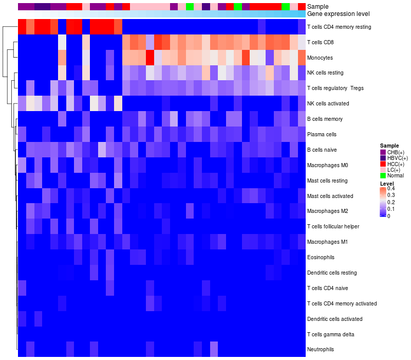 Liver hepatocellular carcinoma HCV (HBV+)(86), Liver hepatocellular carcinoma HCV (HBV-)(19), Liver hepatocellular carcinoma (HBV+)(209), Liver hepatocellular carcinoma (HBV+)(60), Paracancerous HCV (HBV+)(4), Paracancerous (HBV-)(28), Paracancerous (HBV+)(18) |