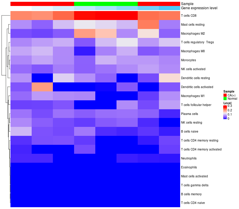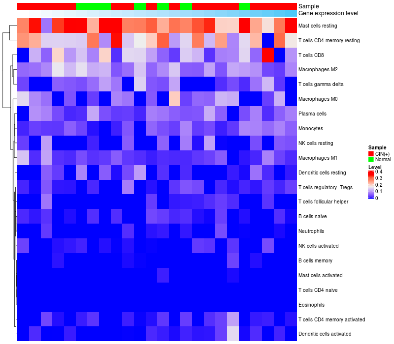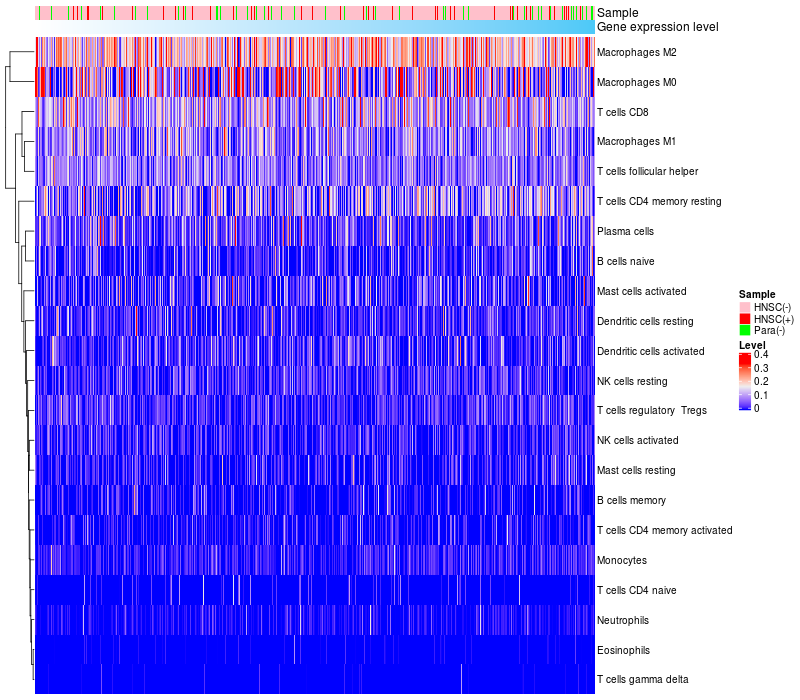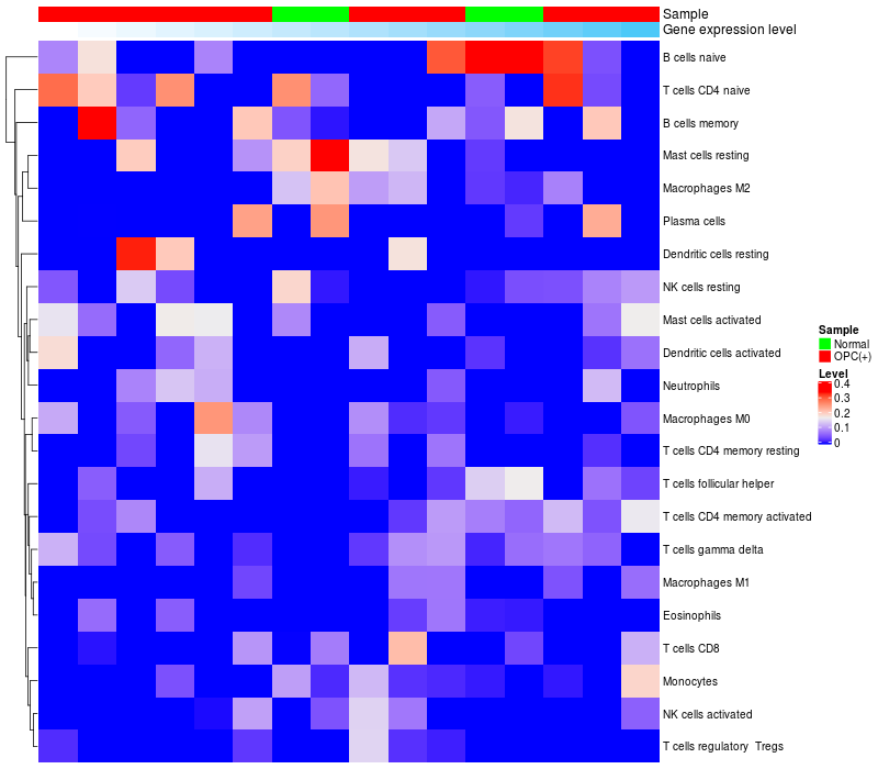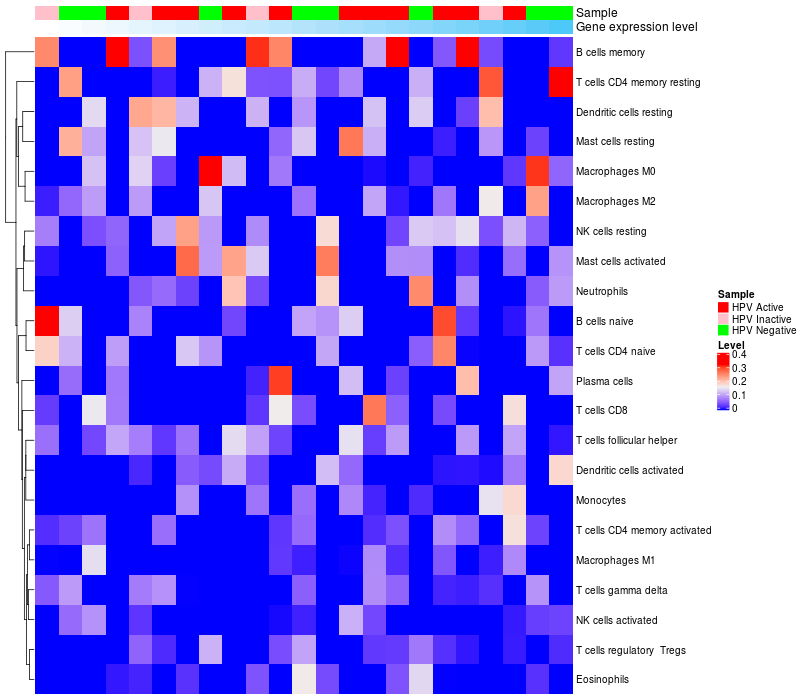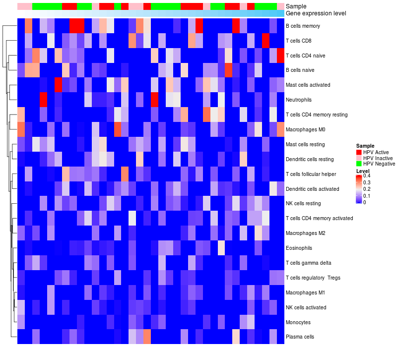 Lollipop of NMBR expression and immune infiltrating cell level correlation result in HPV+ samples