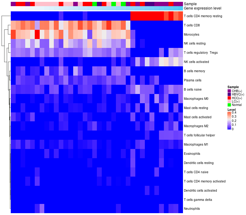 Liver hepatocellular carcinoma HCV (HBV+)(86), Liver hepatocellular carcinoma HCV (HBV-)(19), Liver hepatocellular carcinoma (HBV+)(209), Liver hepatocellular carcinoma (HBV+)(60), Paracancerous HCV (HBV+)(4), Paracancerous (HBV-)(28), Paracancerous (HBV+)(18) |