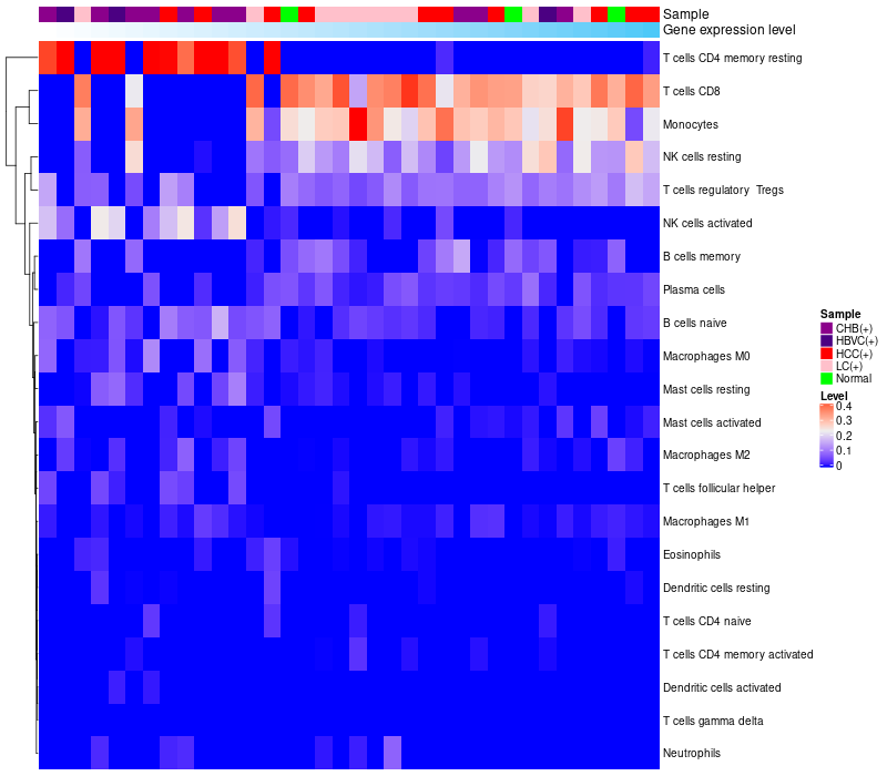 Liver hepatocellular carcinoma HCV (HBV+)(86), Liver hepatocellular carcinoma HCV (HBV-)(19), Liver hepatocellular carcinoma (HBV+)(209), Liver hepatocellular carcinoma (HBV+)(60), Paracancerous HCV (HBV+)(4), Paracancerous (HBV-)(28), Paracancerous (HBV+)(18) |