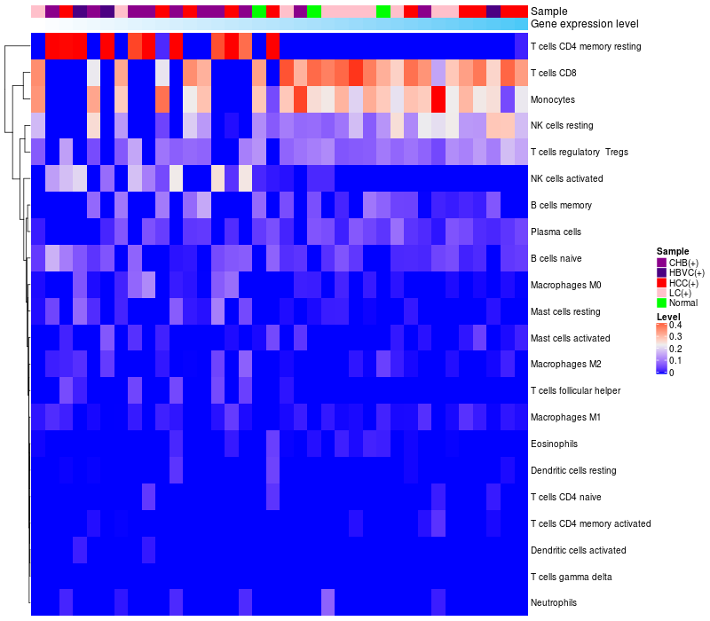 Liver hepatocellular carcinoma HCV (HBV+)(86), Liver hepatocellular carcinoma HCV (HBV-)(19), Liver hepatocellular carcinoma (HBV+)(209), Liver hepatocellular carcinoma (HBV+)(60), Paracancerous HCV (HBV+)(4), Paracancerous (HBV-)(28), Paracancerous (HBV+)(18) |