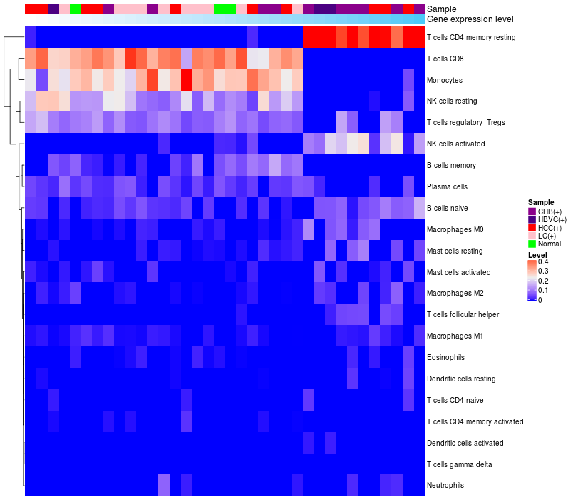 Relationship between gene expression and immune infiltrating cell level