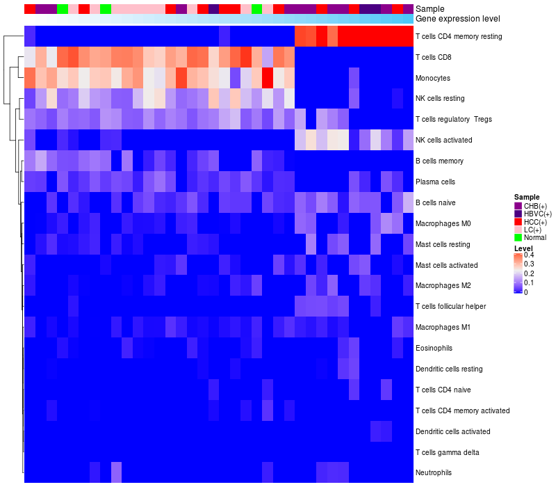 Liver hepatocellular carcinoma HCV (HBV+)(86), Liver hepatocellular carcinoma HCV (HBV-)(19), Liver hepatocellular carcinoma (HBV+)(209), Liver hepatocellular carcinoma (HBV+)(60), Paracancerous HCV (HBV+)(4), Paracancerous (HBV-)(28), Paracancerous (HBV+)(18) |