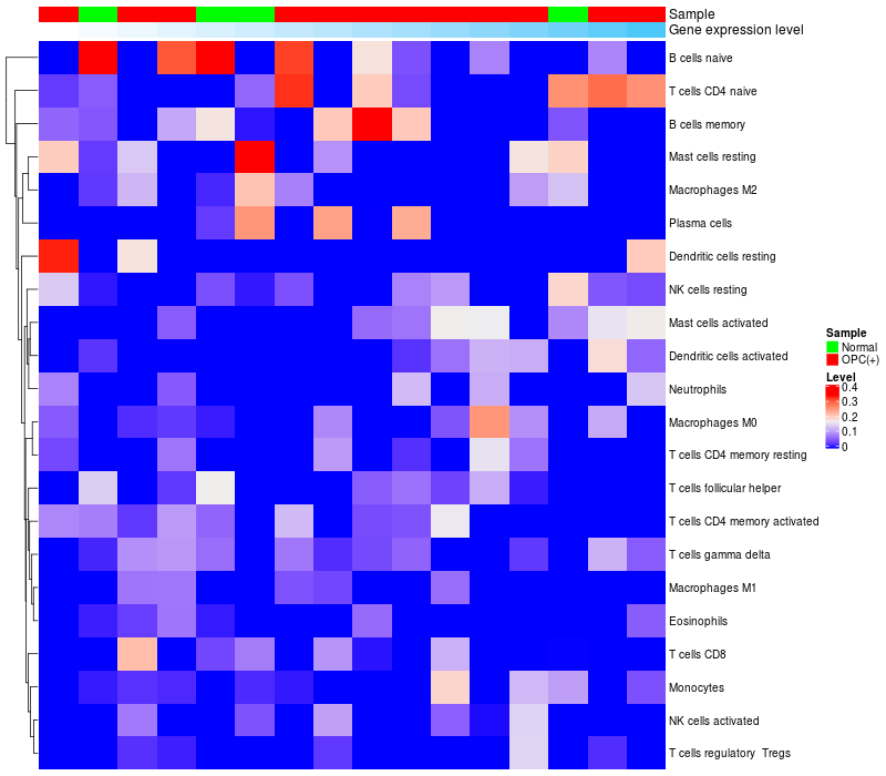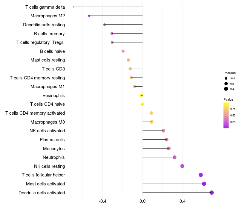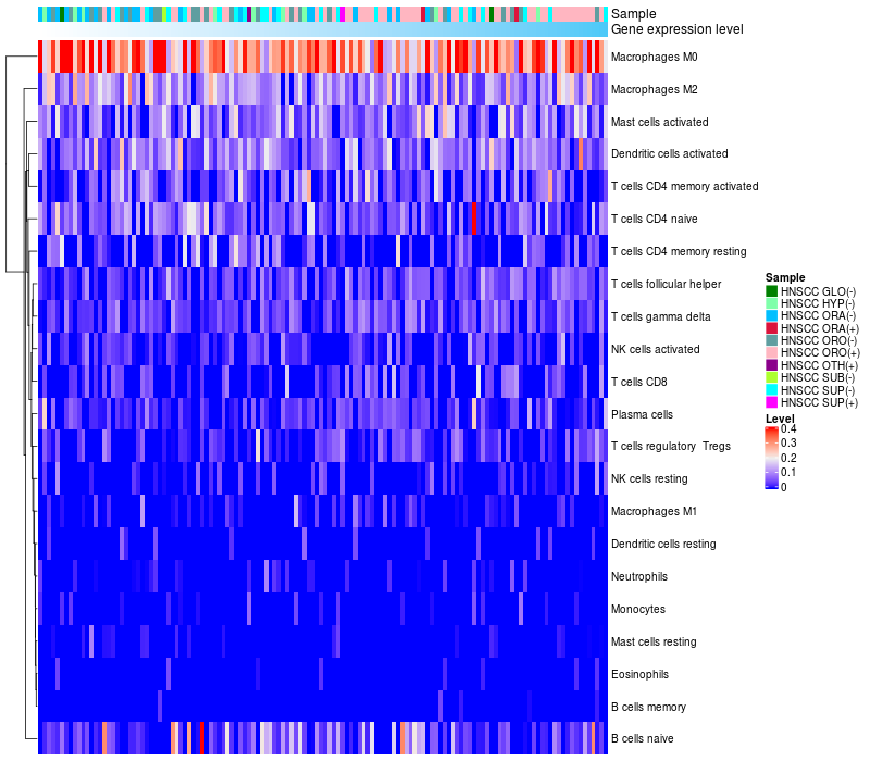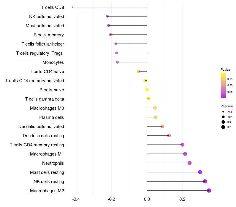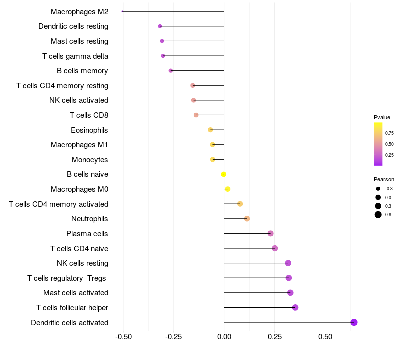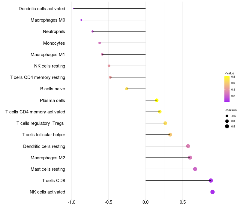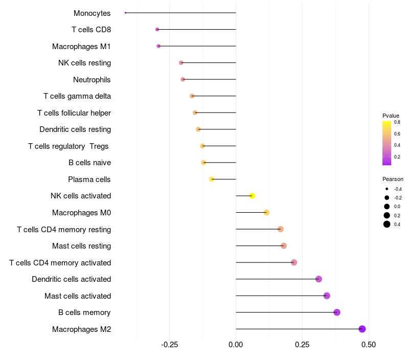 Relationship between gene expression and immune infiltrating cell level