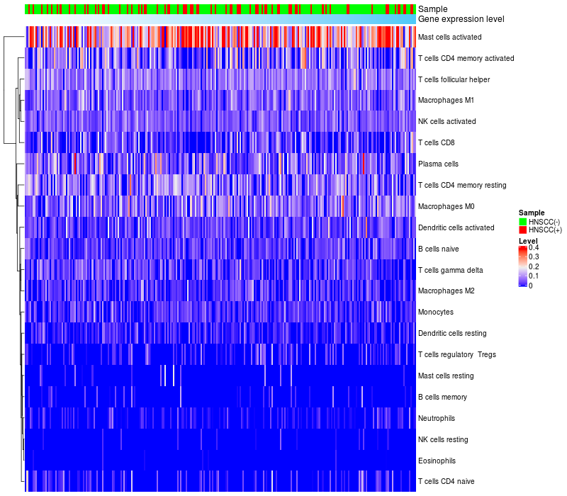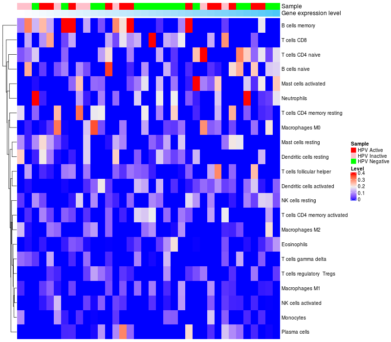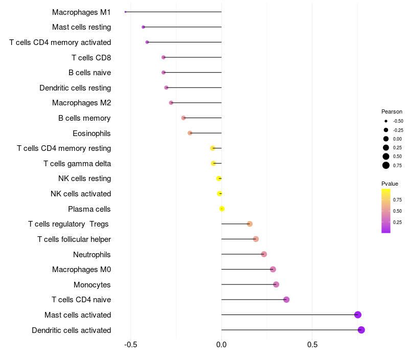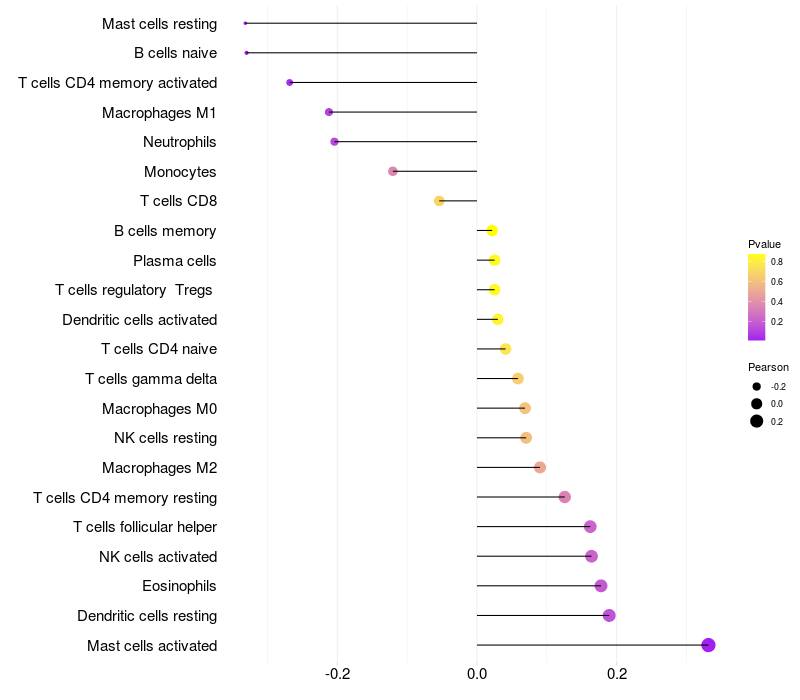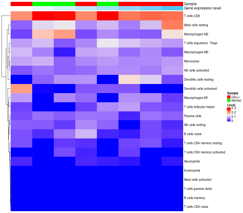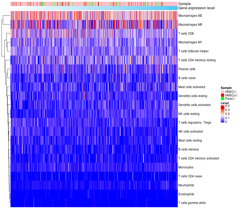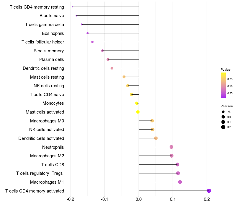 Relationship between gene expression and immune infiltrating cell level