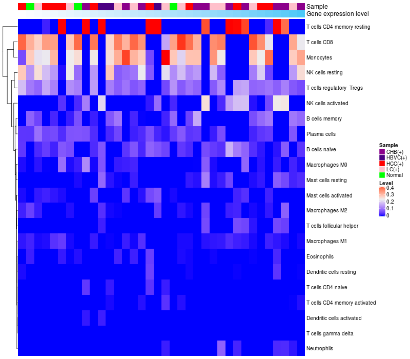 Liver hepatocellular carcinoma HCV (HBV+)(86), Liver hepatocellular carcinoma HCV (HBV-)(19), Liver hepatocellular carcinoma (HBV+)(209), Liver hepatocellular carcinoma (HBV+)(60), Paracancerous HCV (HBV+)(4), Paracancerous (HBV-)(28), Paracancerous (HBV+)(18) |