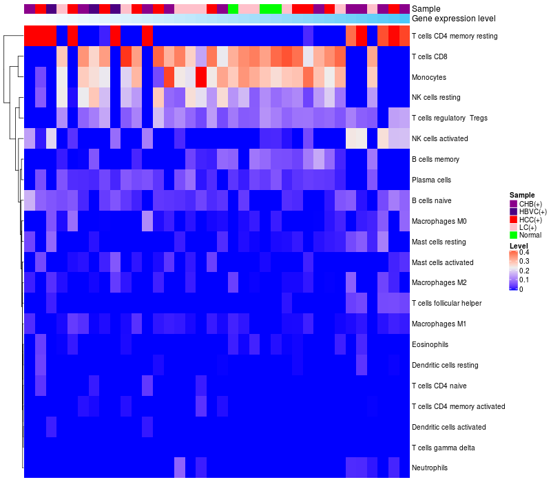 Liver hepatocellular carcinoma HCV (HBV+)(86), Liver hepatocellular carcinoma HCV (HBV-)(19), Liver hepatocellular carcinoma (HBV+)(209), Liver hepatocellular carcinoma (HBV+)(60), Paracancerous HCV (HBV+)(4), Paracancerous (HBV-)(28), Paracancerous (HBV+)(18) |
