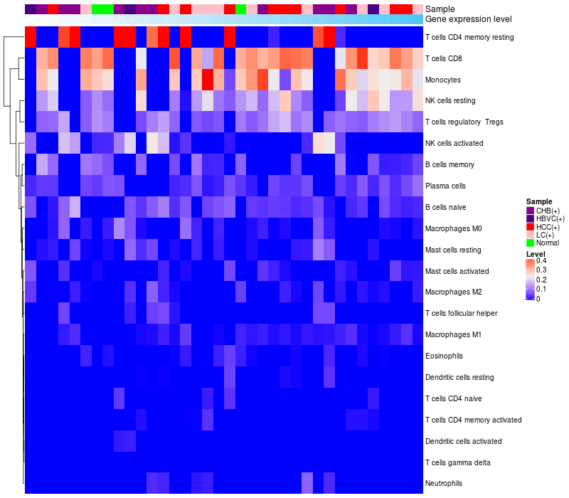 Liver hepatocellular carcinoma HCV (HBV+)(86), Liver hepatocellular carcinoma HCV (HBV-)(19), Liver hepatocellular carcinoma (HBV+)(209), Liver hepatocellular carcinoma (HBV+)(60), Paracancerous HCV (HBV+)(4), Paracancerous (HBV-)(28), Paracancerous (HBV+)(18) |