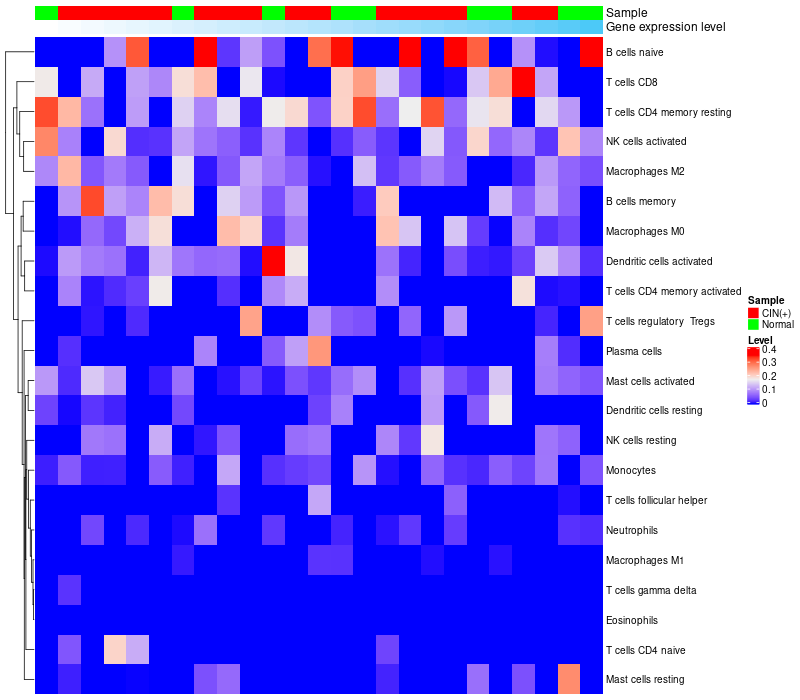 Normal (10), Cervical intraepithelial neoplasia (HPV+)(15) |