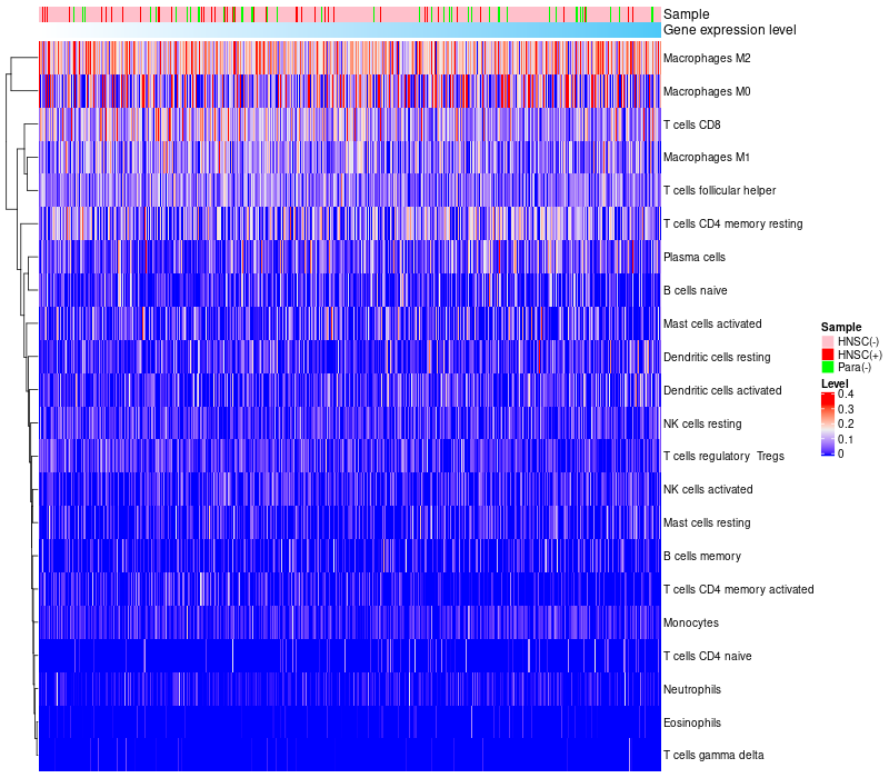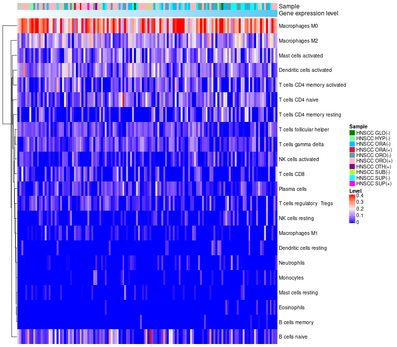 Head and Neck squamous cell carcinoma(HPV-)(483),Head and Neck squamous cell carcinoma(HPV+)(39),Paracancerous(HPV-)(44) |