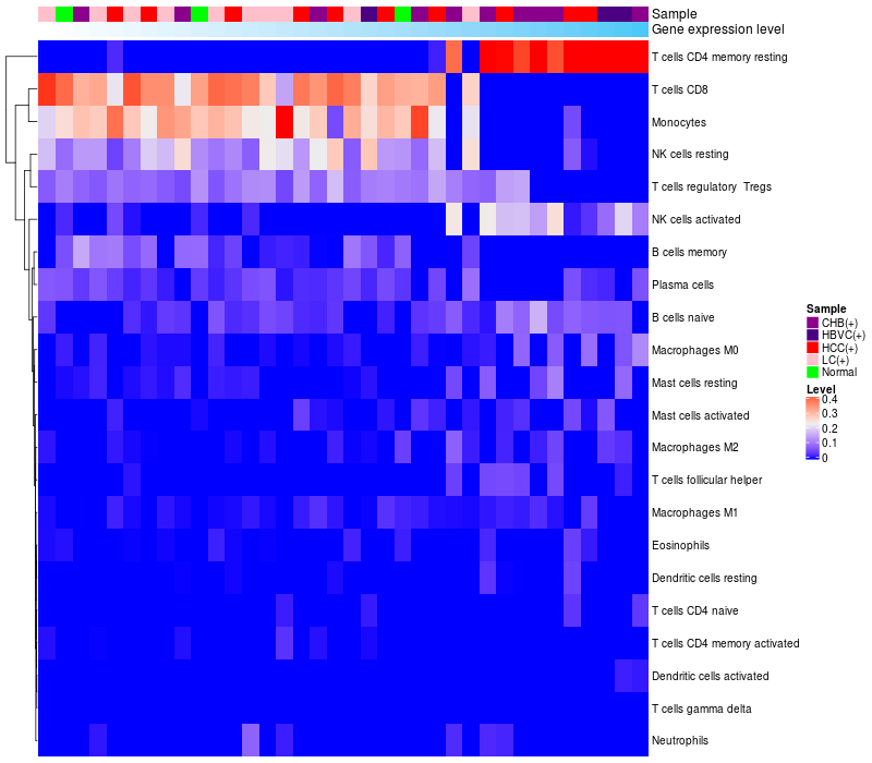 Liver hepatocellular carcinoma HCV (HBV+)(86), Liver hepatocellular carcinoma HCV (HBV-)(19), Liver hepatocellular carcinoma (HBV+)(209), Liver hepatocellular carcinoma (HBV+)(60), Paracancerous HCV (HBV+)(4), Paracancerous (HBV-)(28), Paracancerous (HBV+)(18) |