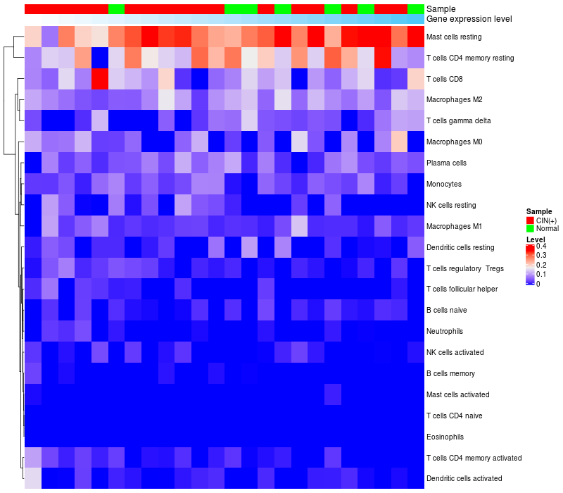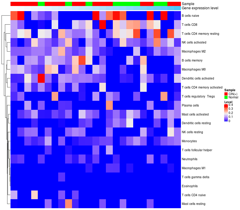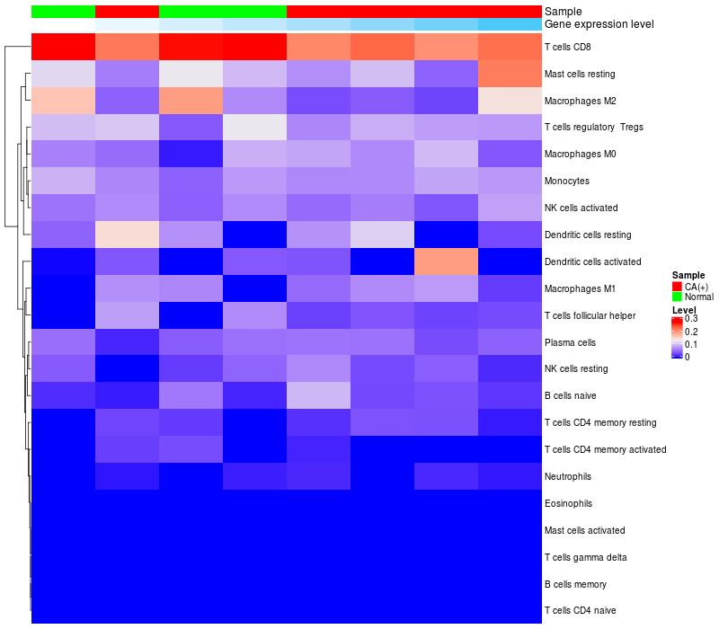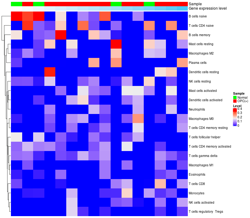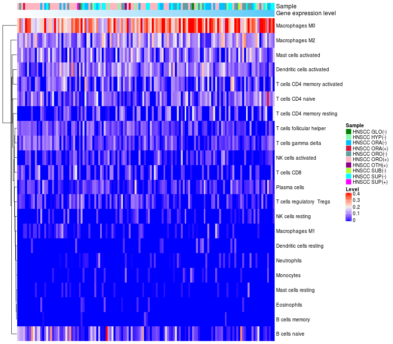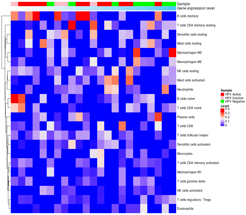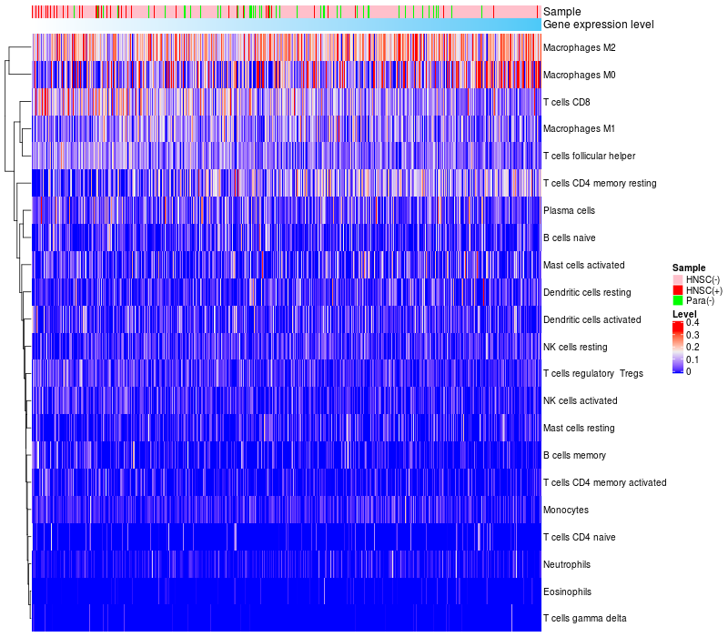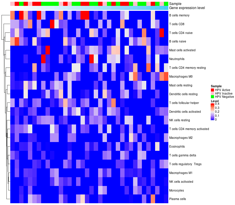 Lollipop of PALLD expression and immune infiltrating cell level correlation result in HPV+ samples
